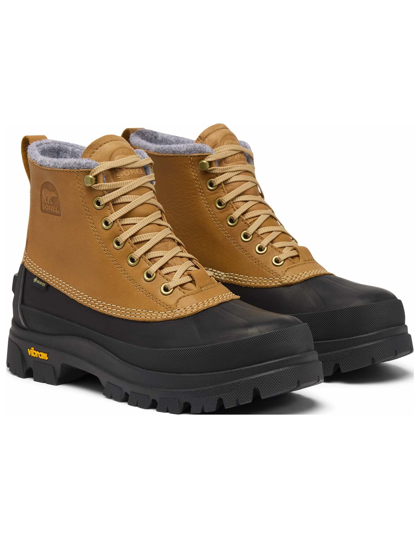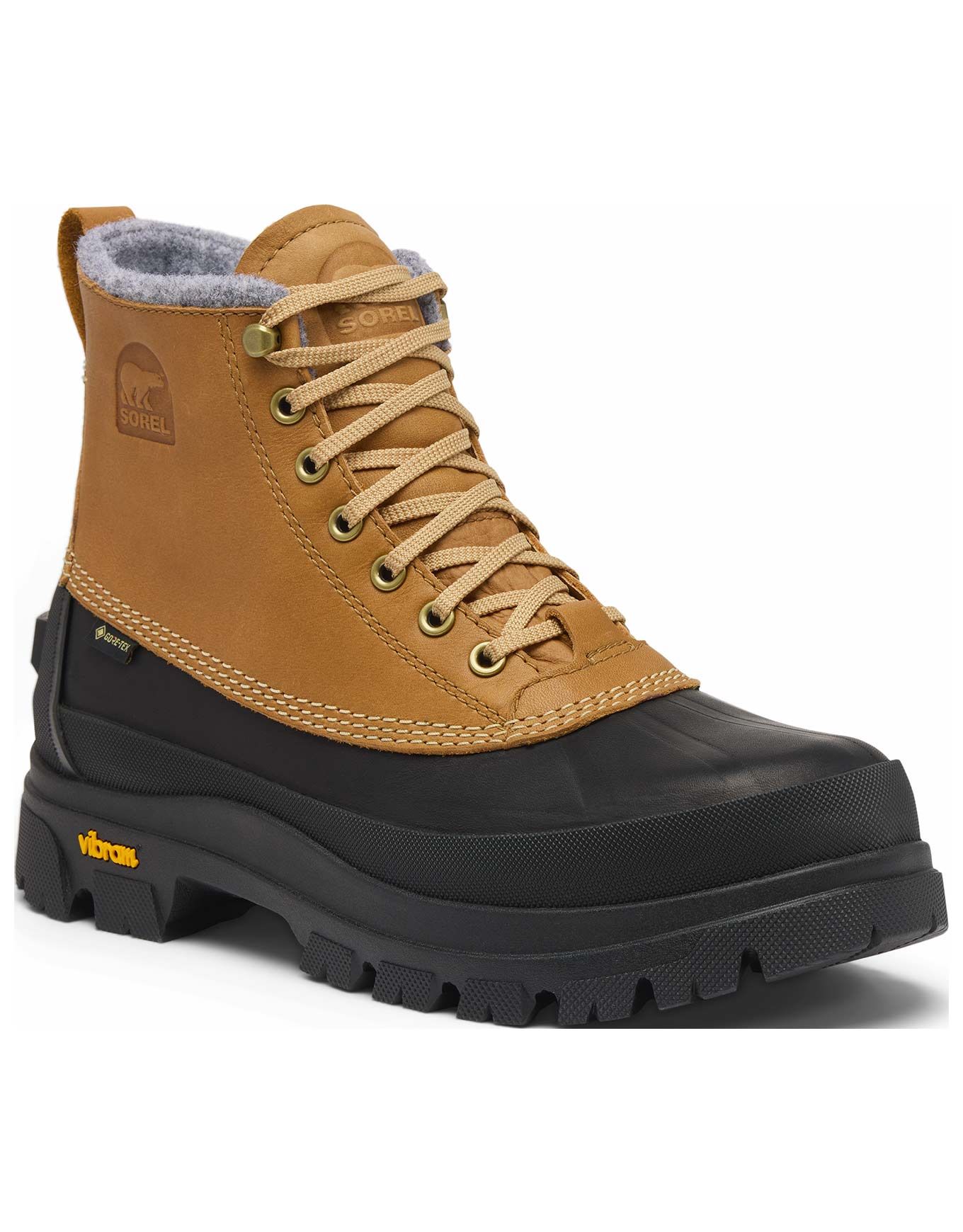 Sorel Daystorm Horizon GTX Caribou Buff Black, après-ski homme imperméable Gore-Tex™, cuir pleine fleur, col feutré, semelle Ortholite™ et Vibram XS TREK EVO pour tenue et adhérence urbaine.