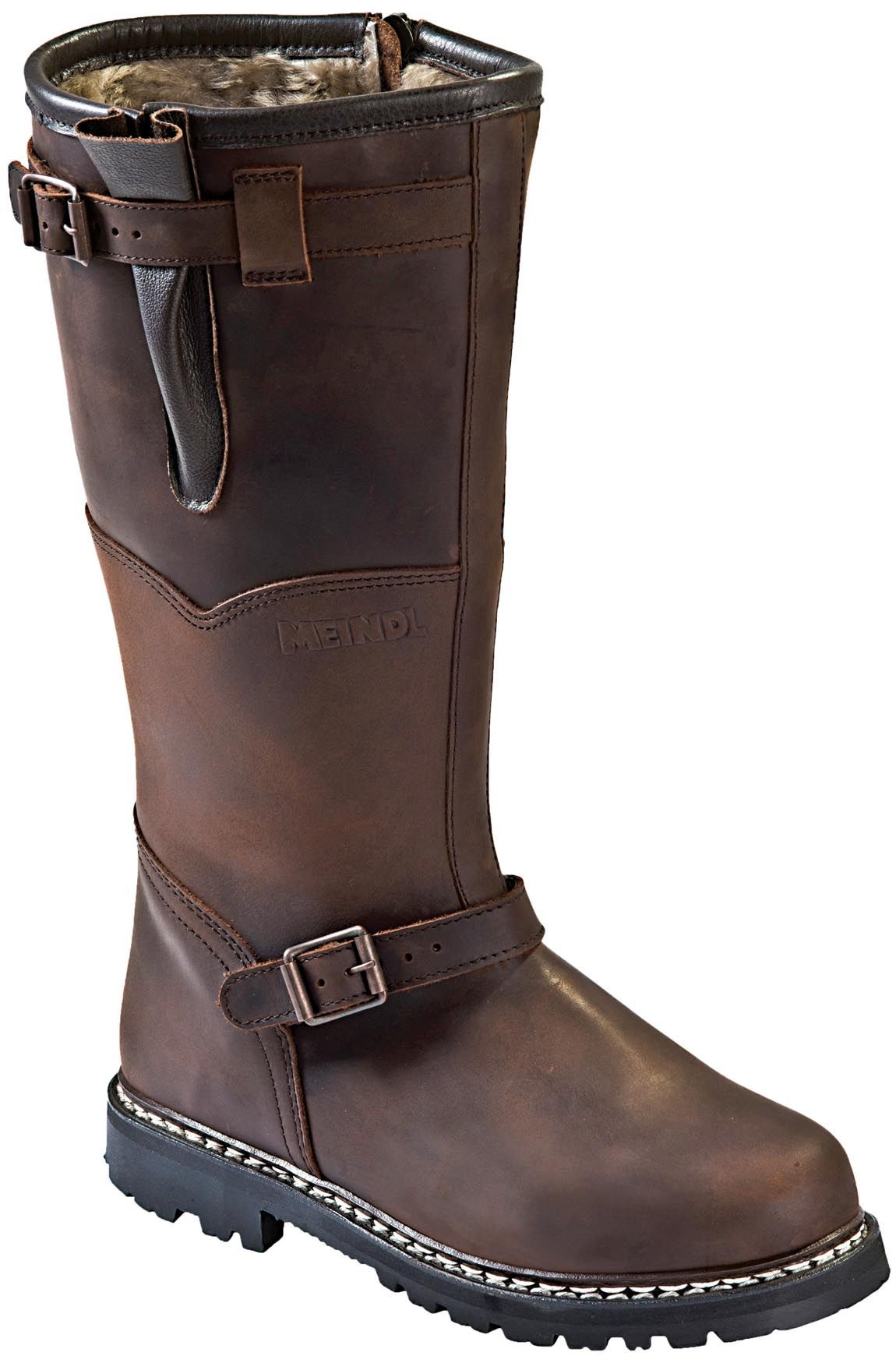 Botte hiver Meindl Kitzbühel, fourrée laine d’agneau, tige haute protégeant du froid, vent et neige, construction double cousue pour maintien et confort.