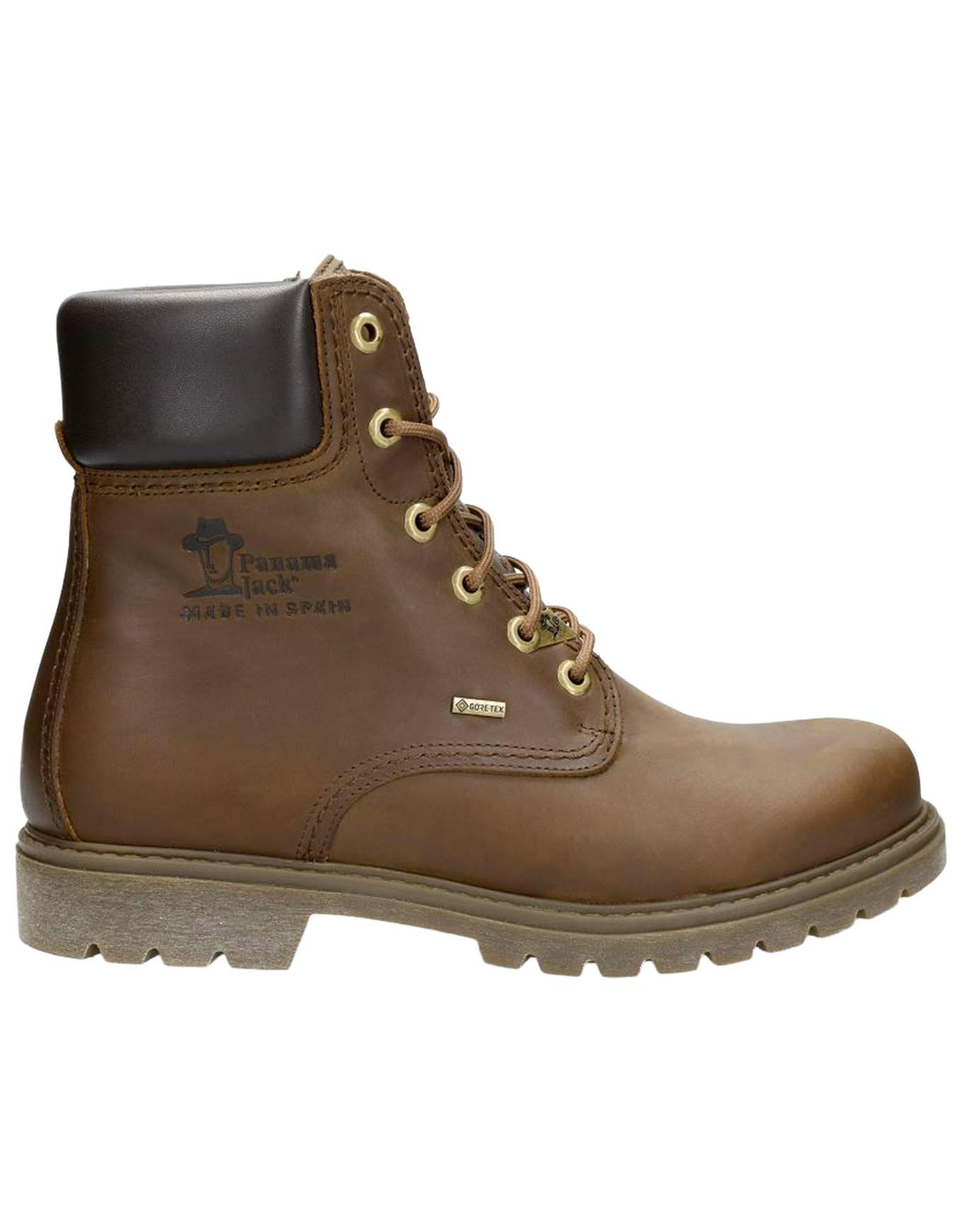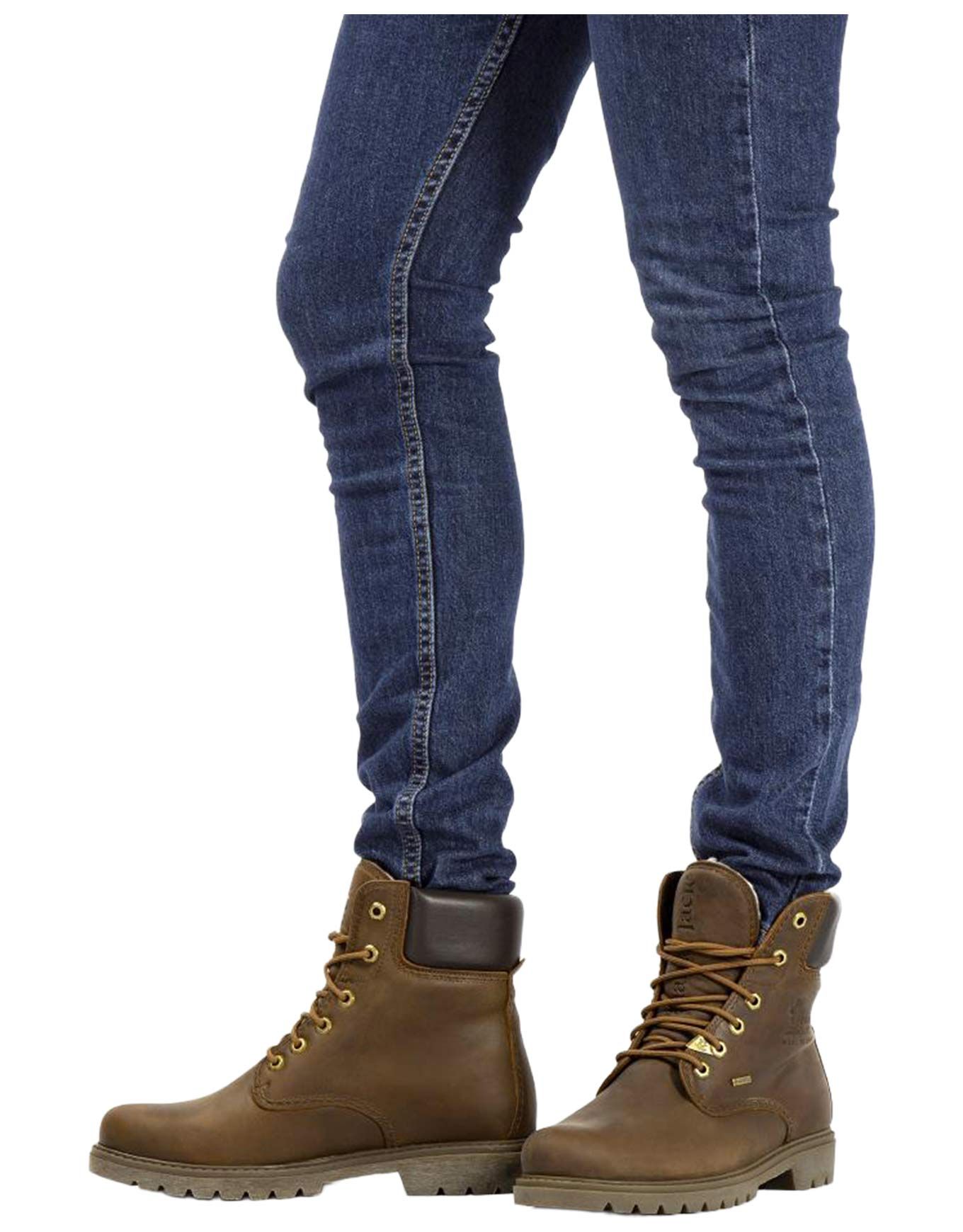 Bottines Panama Jack Panama 03 GTX Wool C1 Napa Grass Cuero/Black en cuir nappa gras, imperméables GORE-TEX, doublure laine, semelle anatomique amovible et adhérence caoutchouc naturel, tige 16 cm, talon 4,5 cm, fabriquées en Espagne.