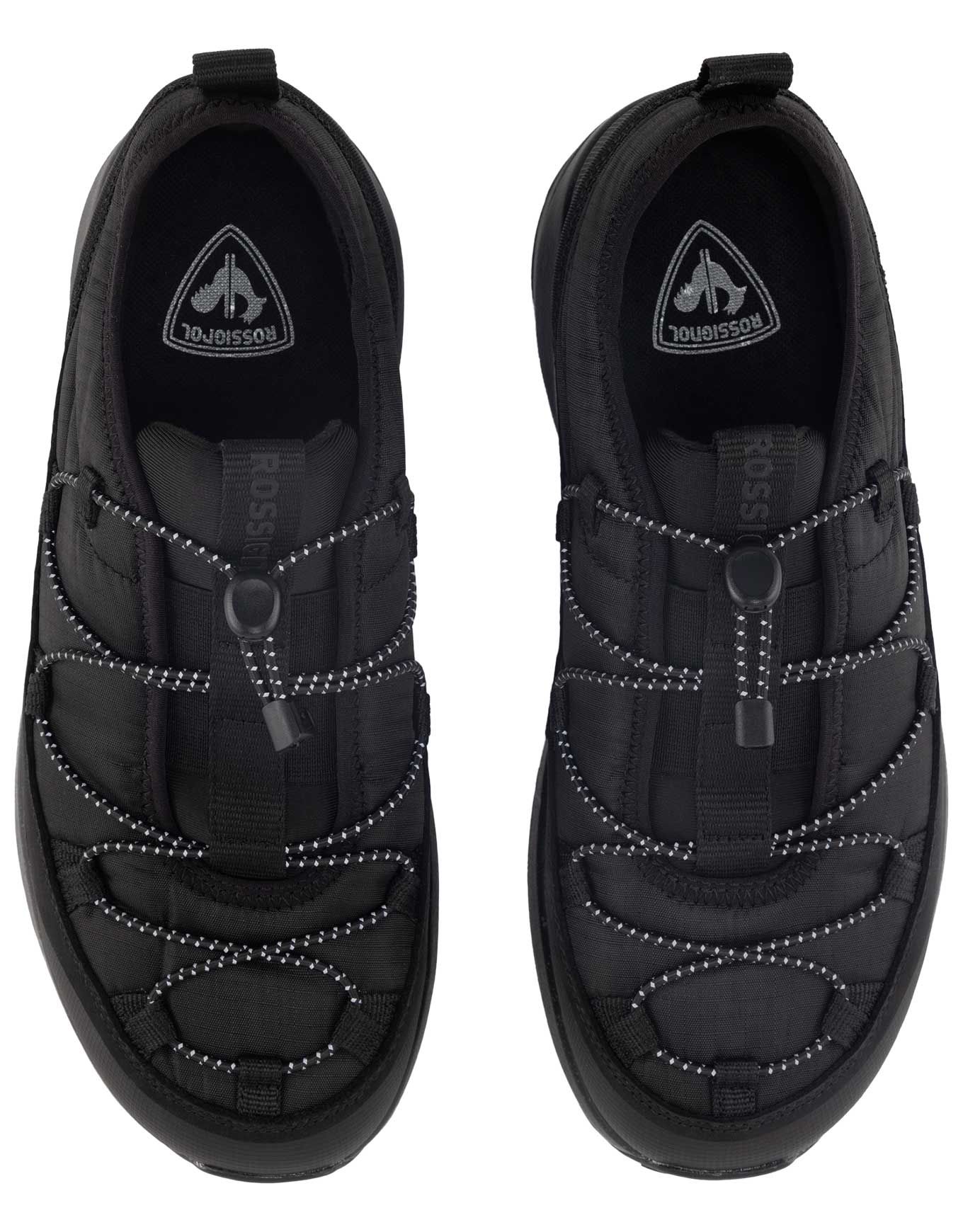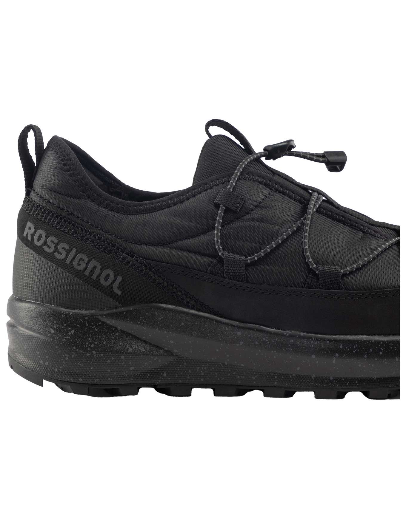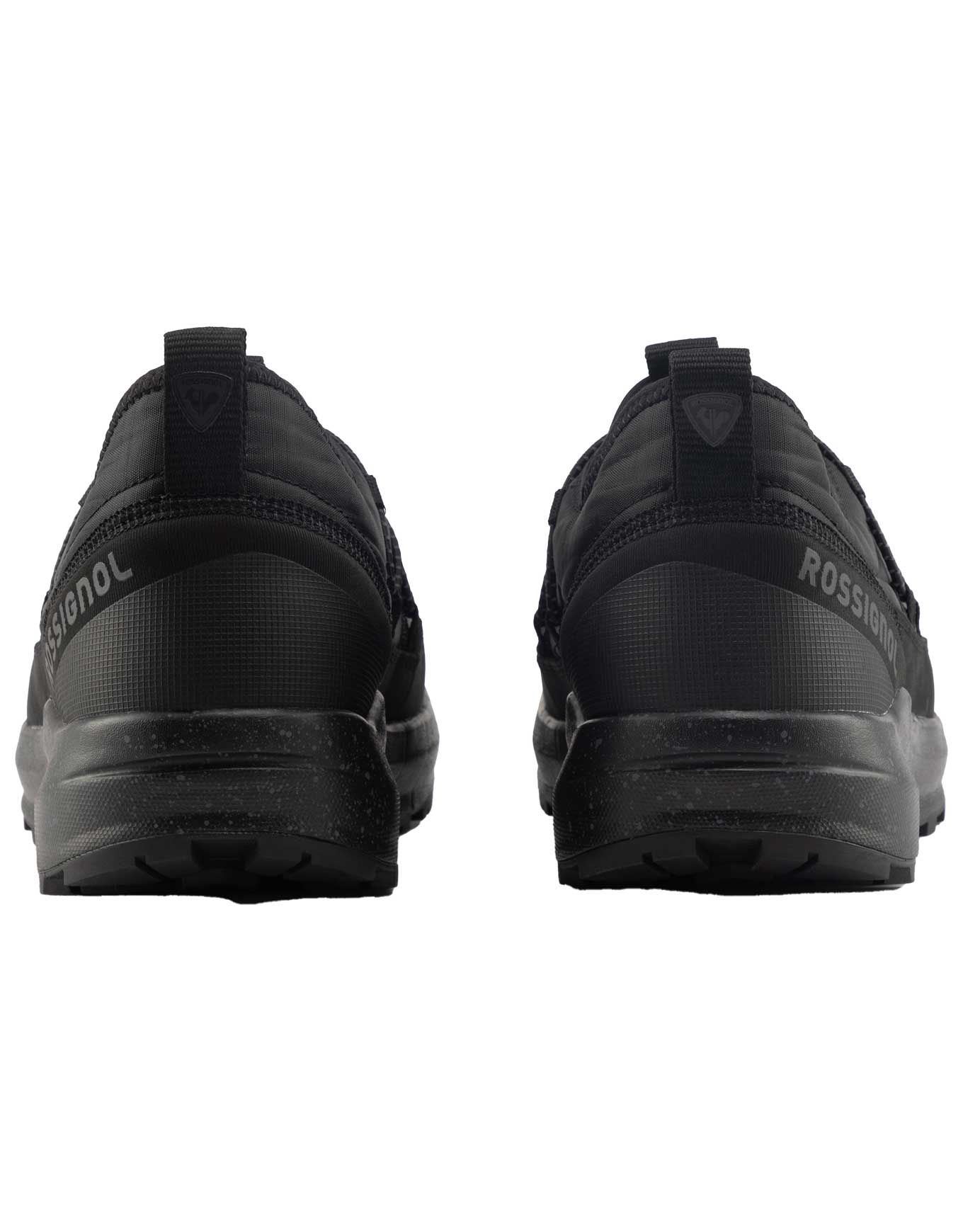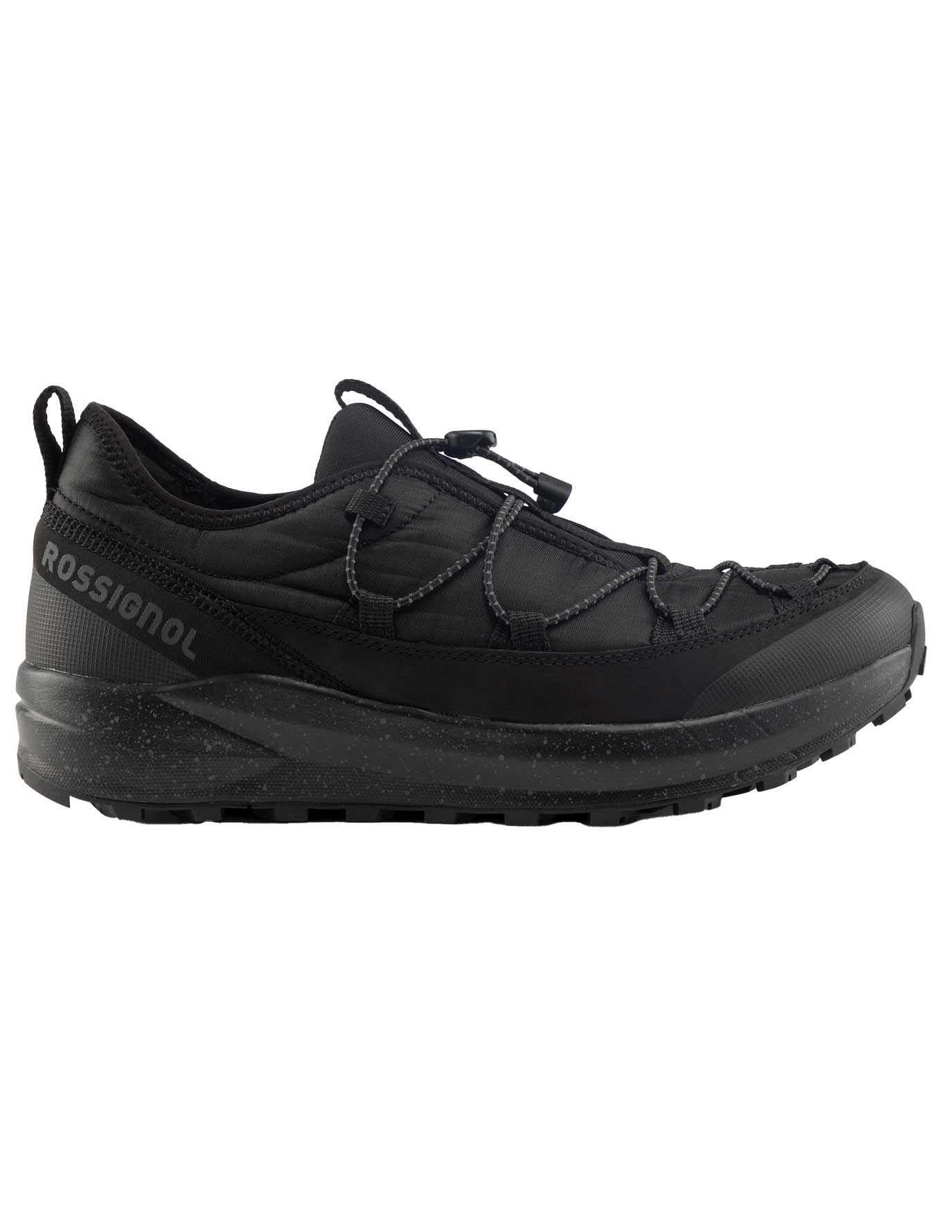 Chaussures basses Resort Low Black Rossignol homme : talon repliable, semelle caoutchouc neige/glace, doublure micropolaire et traitement déperlant sans PFC pour la ville hivernale.