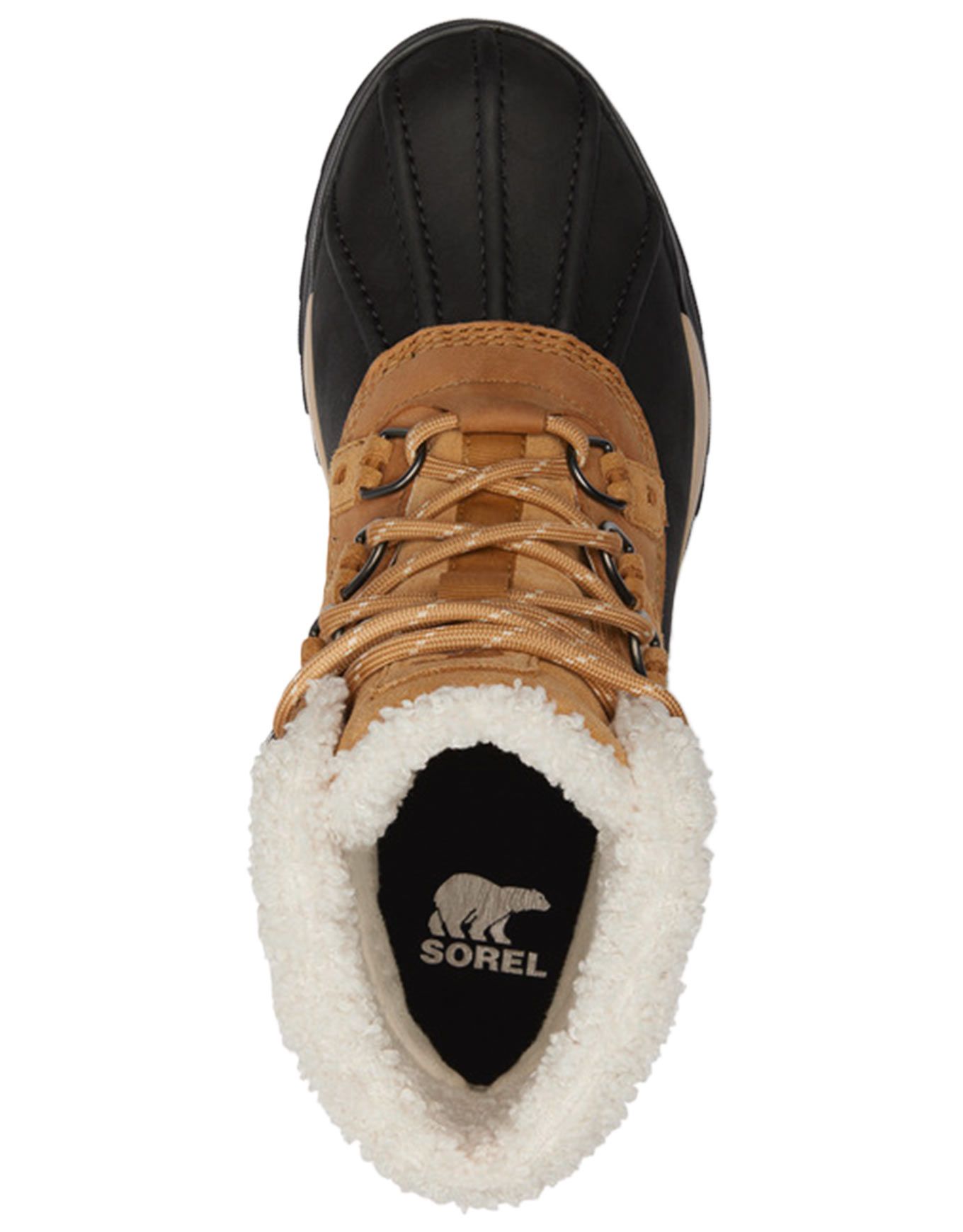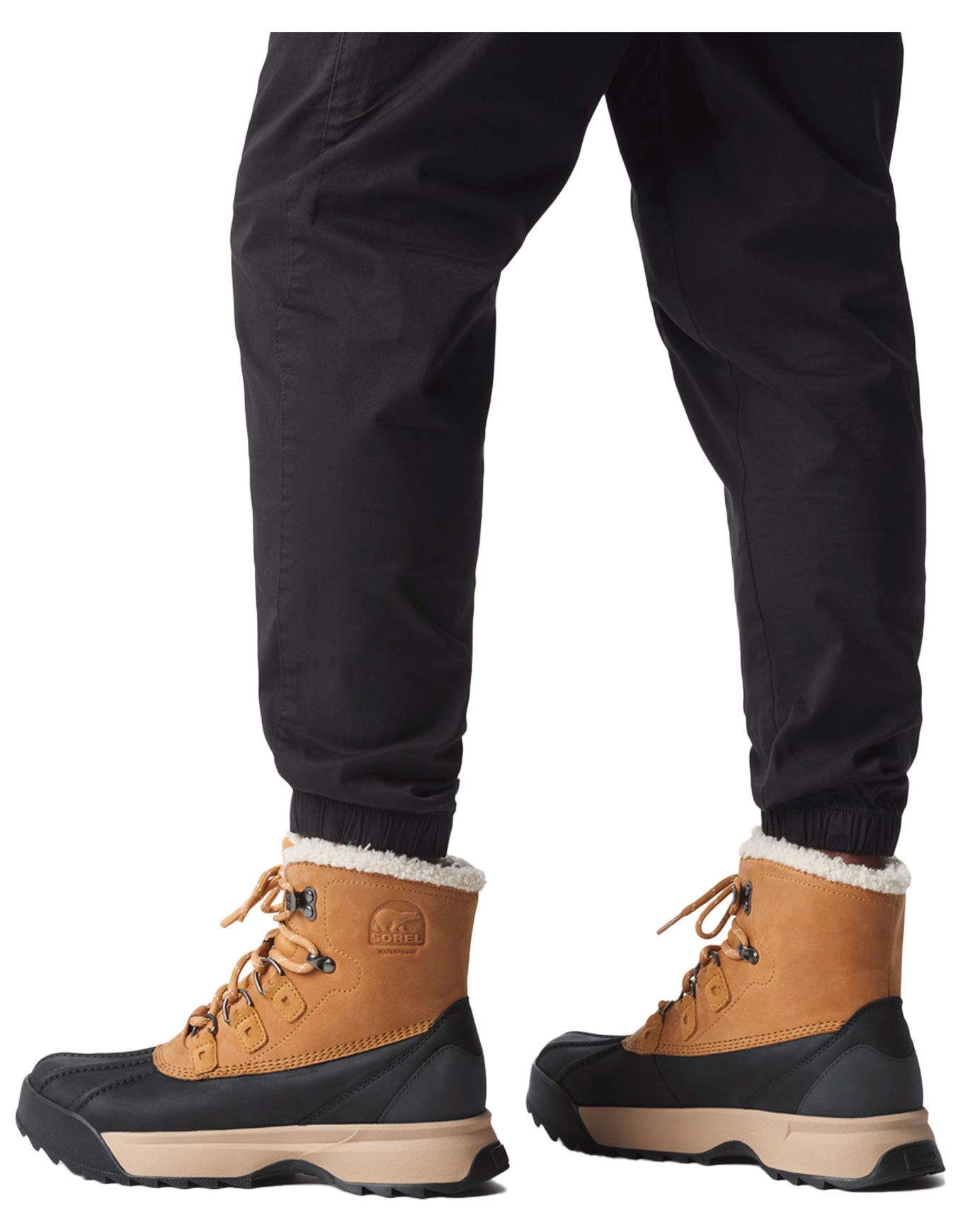 Après-ski Sorel Scout™ 87’™ Lux Wp Caribou Buff Black pour homme, en cuir imperméable avec isolation 200 g, doublure polaire et col synthétique pour chaleur et confort en hiver.