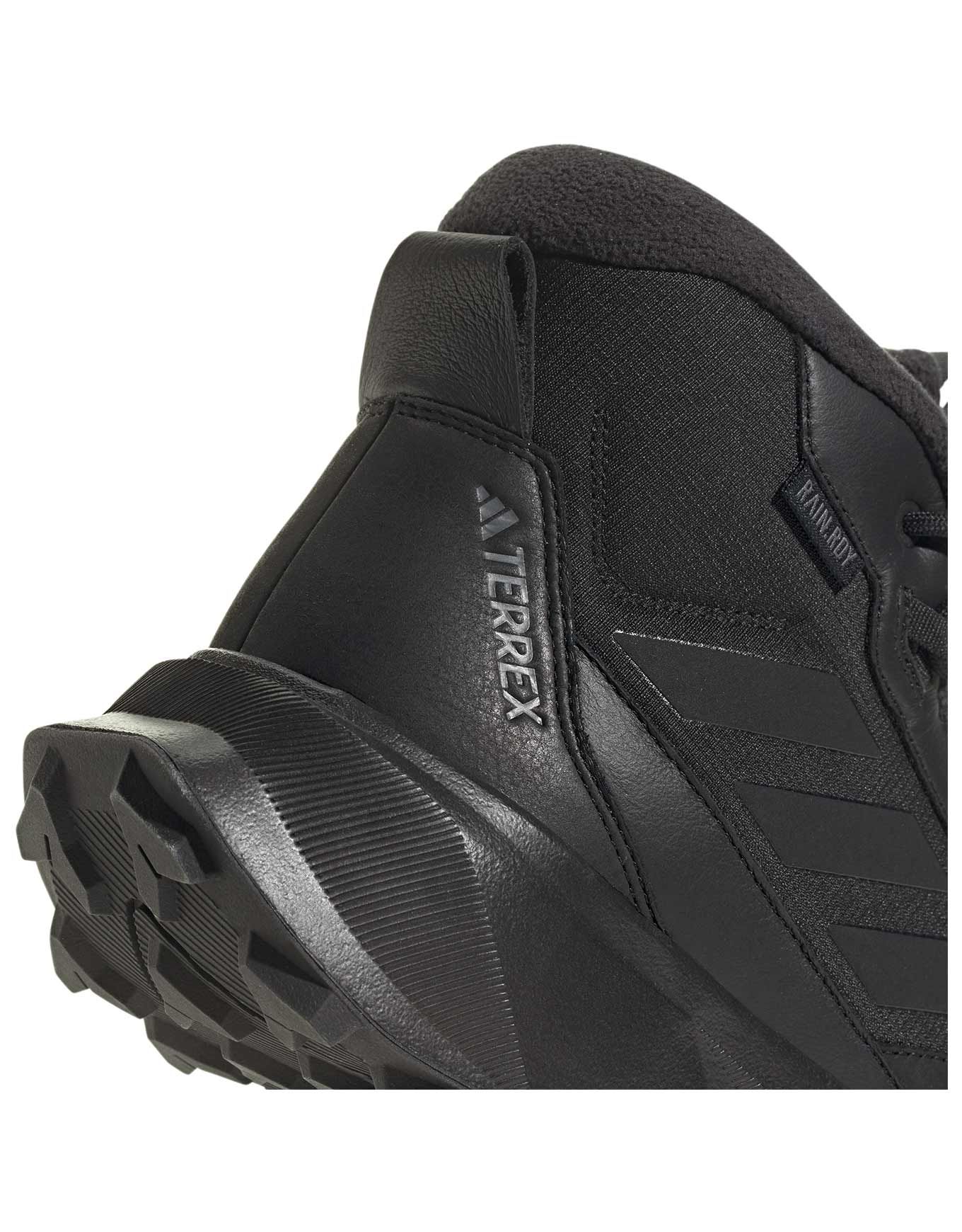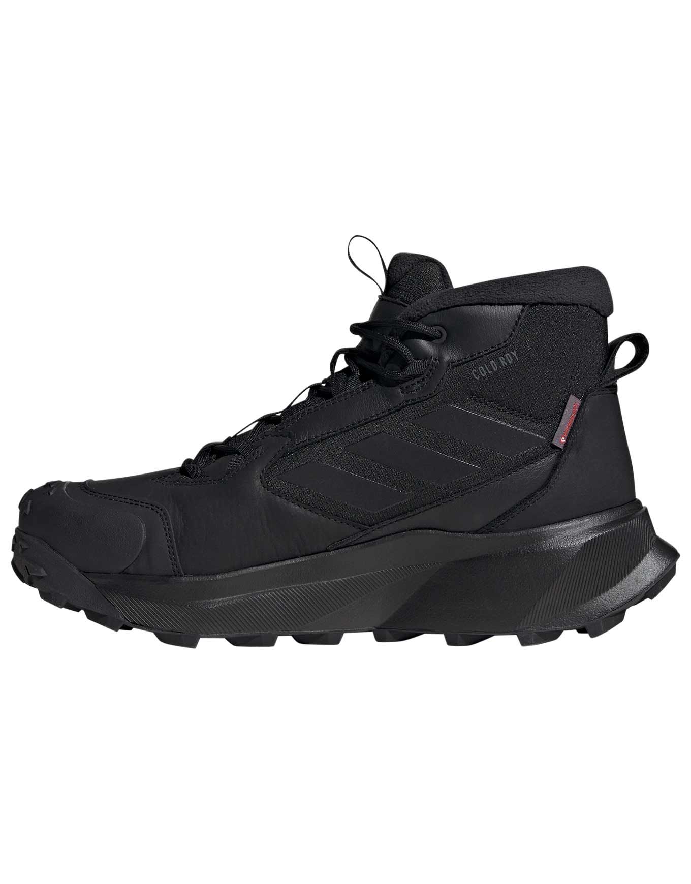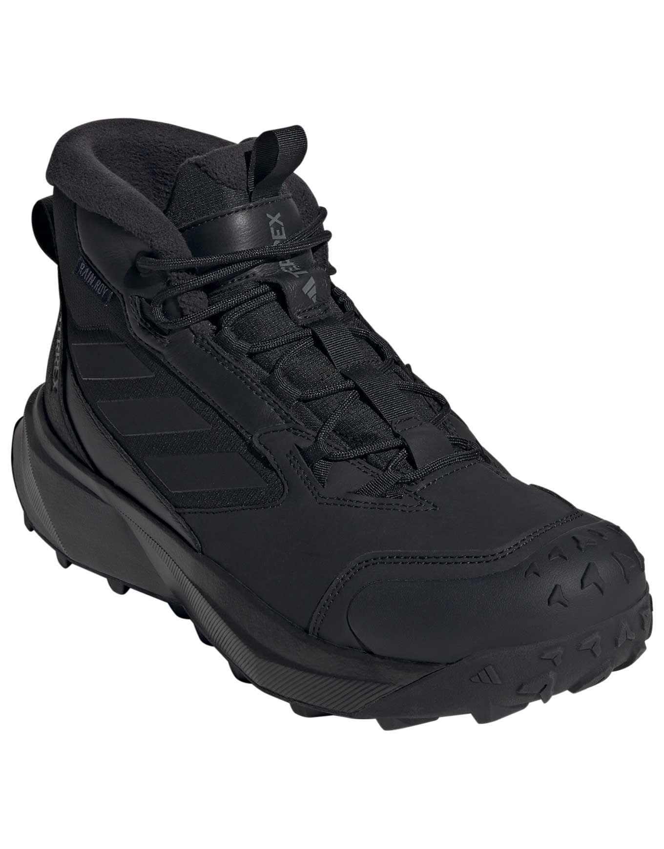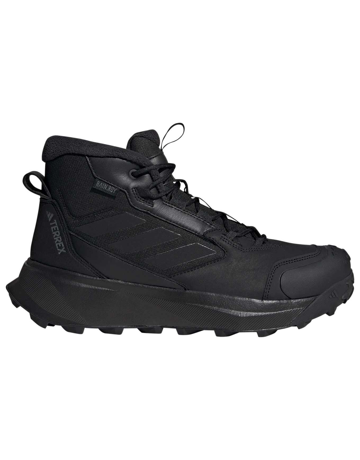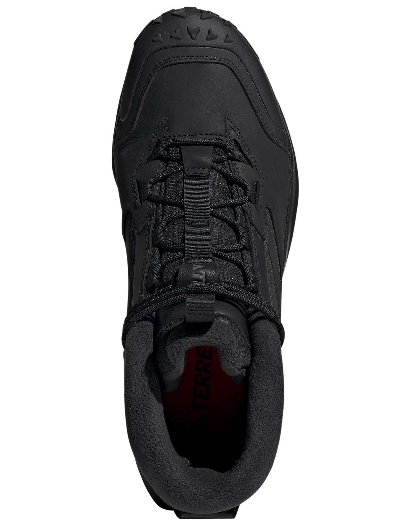 Adidas Winter Boot Mid Leather Core Black, chaussure hiver polyvalente en cuir partiellement recyclé, imperméable RAIN.RDY, isolante PrimaLoft® Silver ECO et COLD.RDY, drop 10 mm, respirante et ajustement précis.