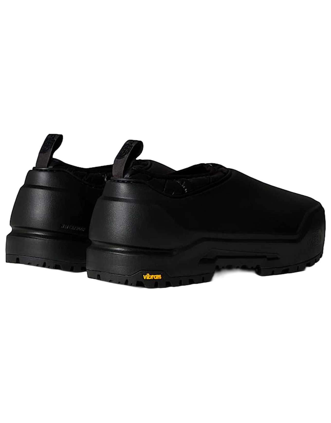 Les pantoufles The North Face Base Camp WP Mule Black/Black pour homme allient isolation Thermoball, tissu extérieur waterproof et semelle Vibram XS Trek pour un confort chaud et sécurisé autour du camp.