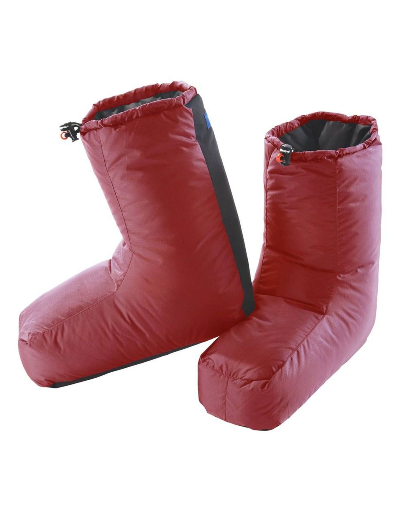 Chaussons d’expédition Valandré Olan : 800 CUIN de duvet d’oie, construction 4 compartiments, tiennent les pieds au chaud jusqu’à –30 °C, légers et compressibles pour toutes les expéditions extrêmes.