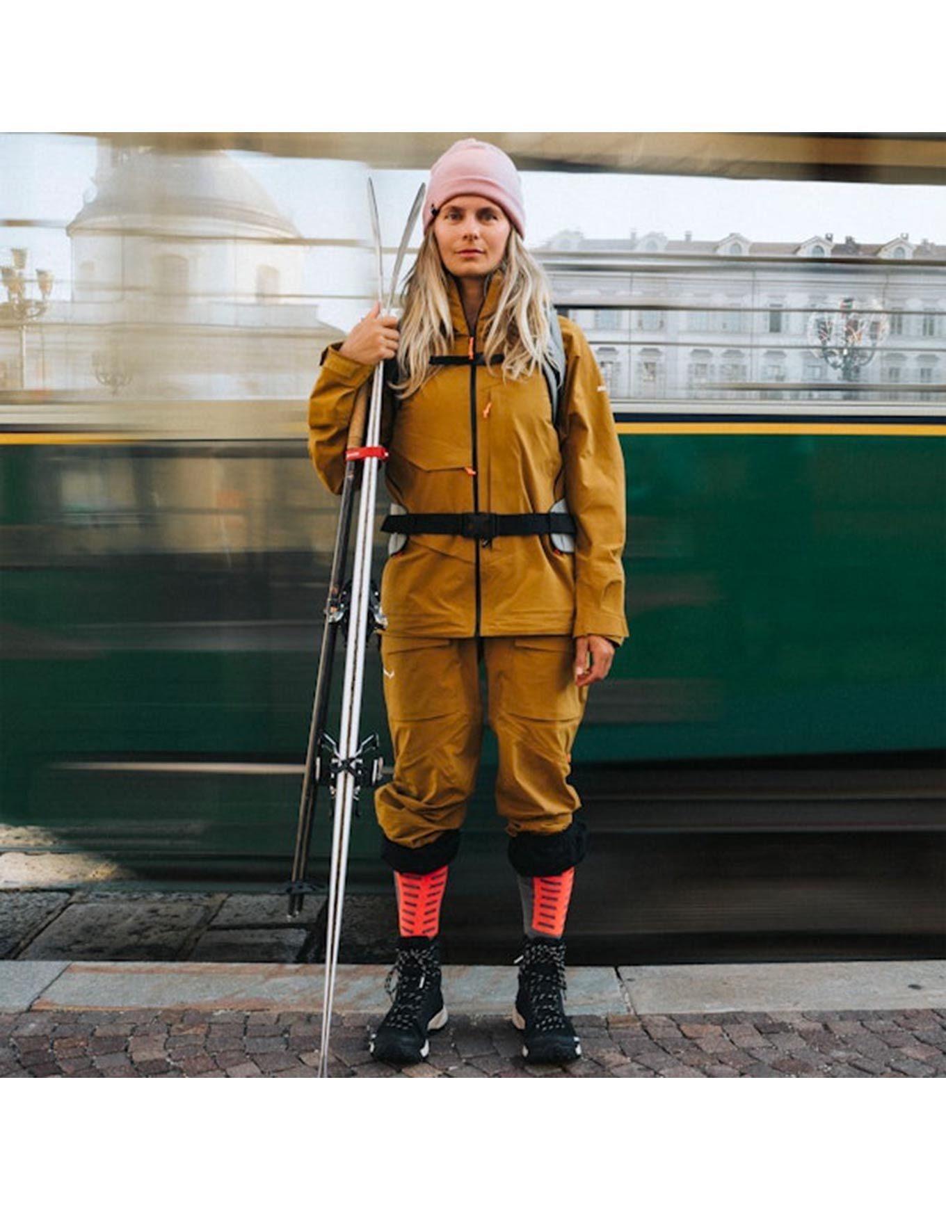 L’ajustement de la chaussure est rendu possible par la semelle intérieure CFF Winter recouverte de feutre, tandis que la semelle intermédiaire composée de chanvre alpin et l’Edging Plate 2 procurent un amorti pérenne et une démarche plus souple. Extérieurement, la semelle Alpine Trekker de Pomoca offre une adhérence fiable et durable sur la neige, et la protection en TPU qui recouvre la chaussure accroît sa résistance tout en préservant des blessures superficielles causées par l’environnement.