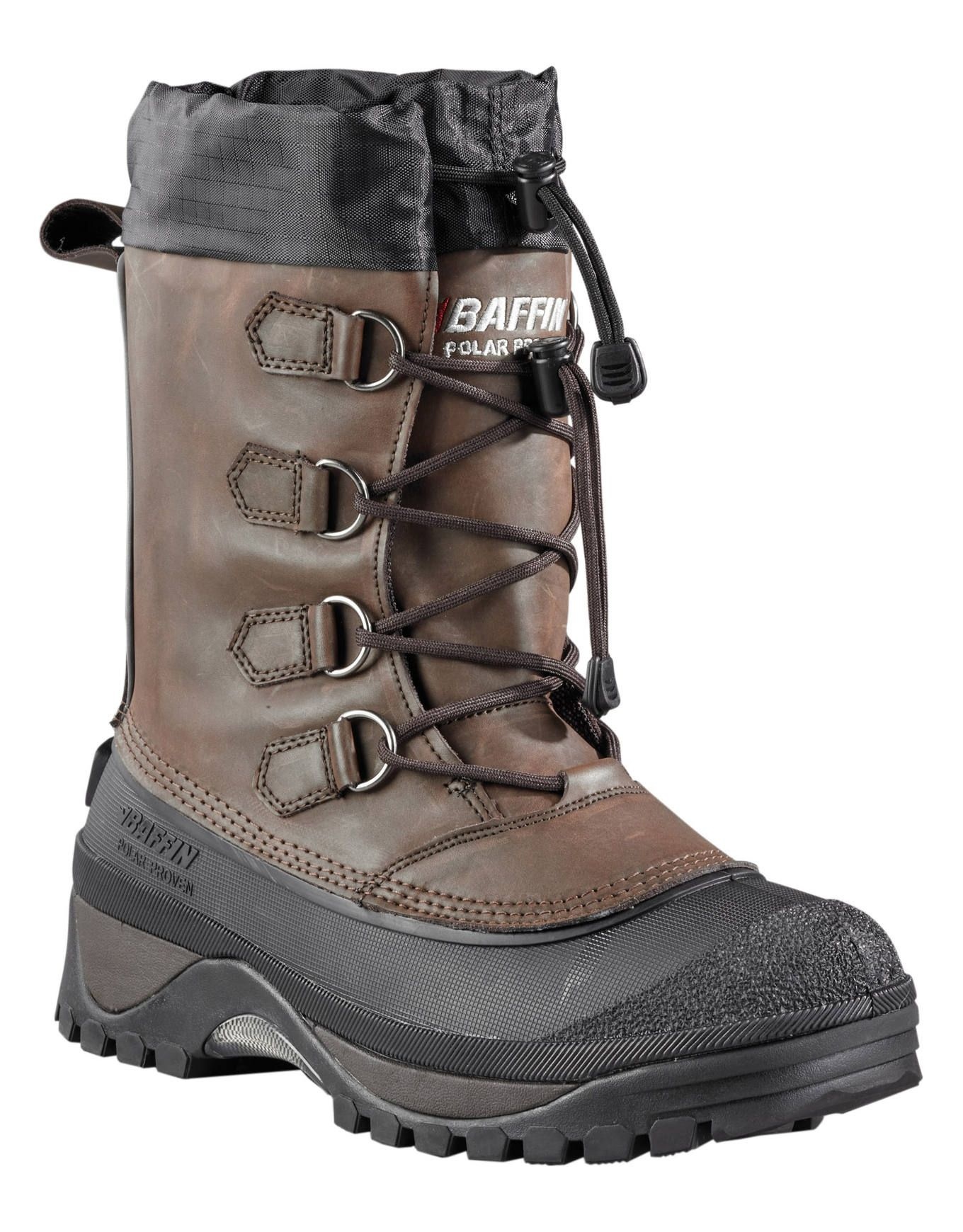 Chaussure de randonnée Baffin Muskox conçue pour affronter le froid extrême jusqu’à -40°C, avec tige en cuir/polyamide 900D, guêtre anti-neige, chausson 5 couches amovible Polimech™/Thermaplush™ et semelle aluminium réfléchissant la chaleur.