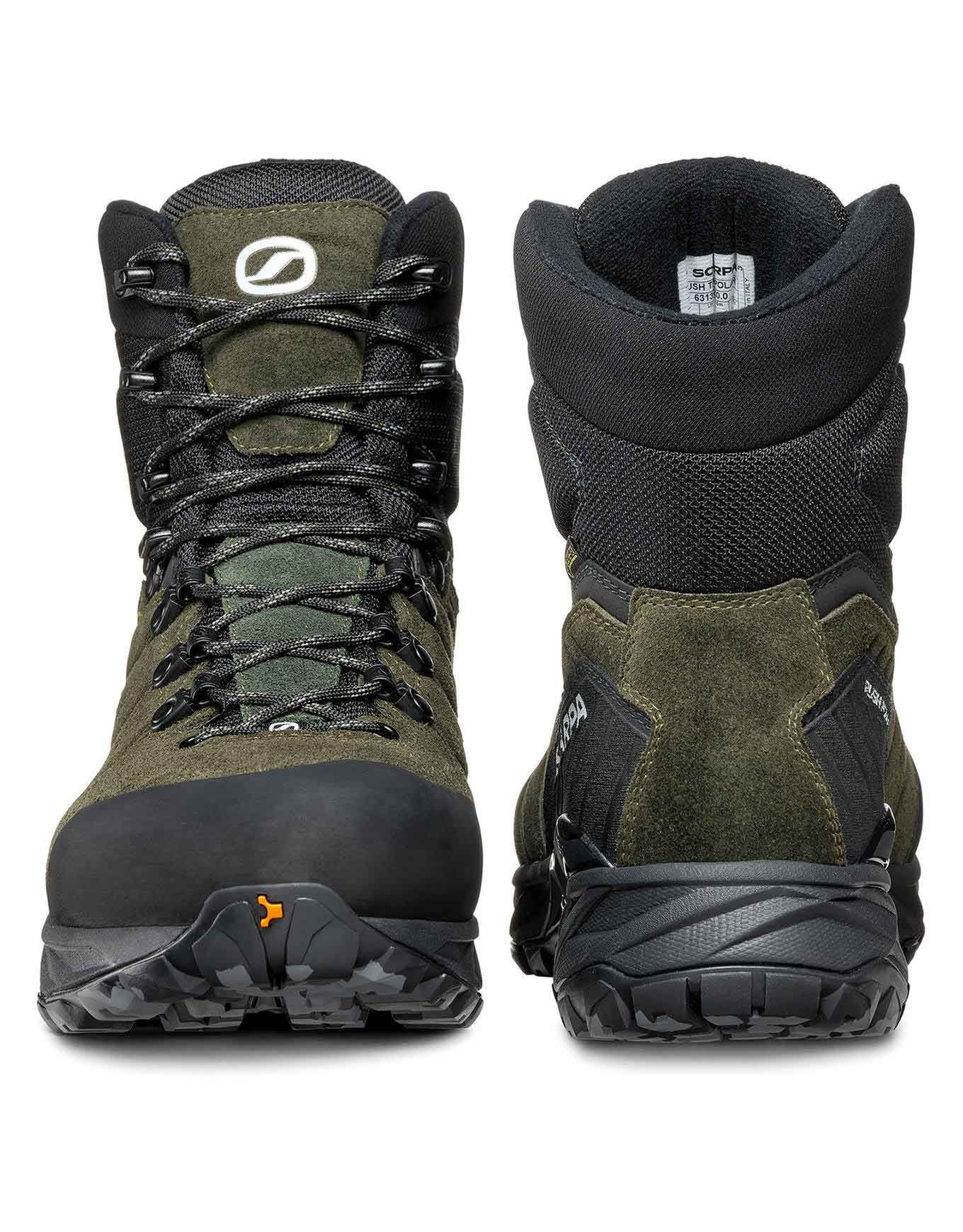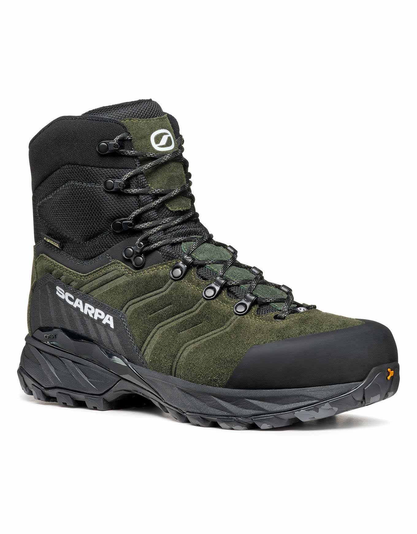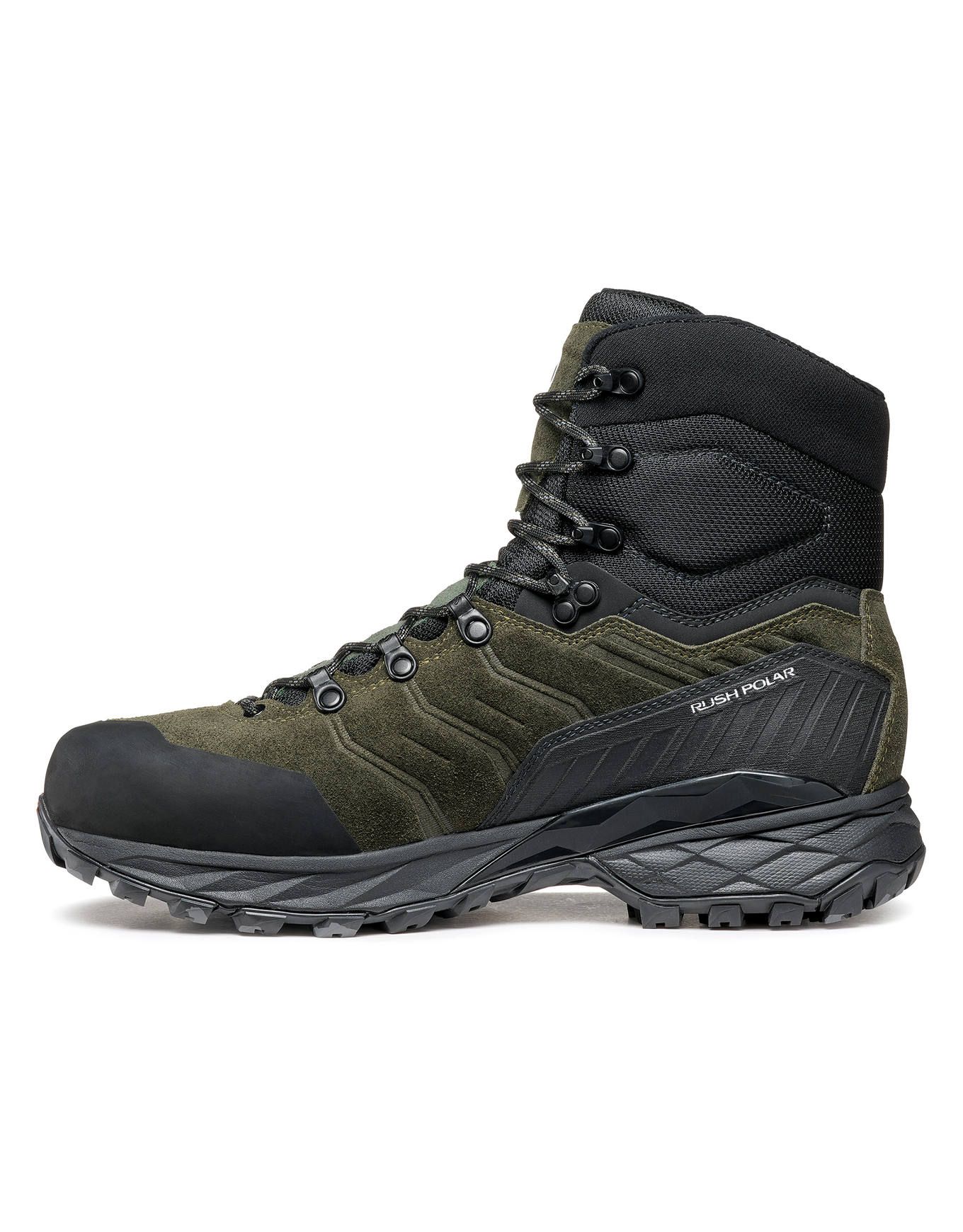 Chaussure hivernale Scarpa Rush Polar GTX pour homme, conçue pour la randonnée en neige et raquettes. Membrane GORE-TEX et doublure PrimaLoft® Gold pour imperméabilité, respirabilité et isolation thermique. Semelle Presa pour adhérence sur neige et glace.