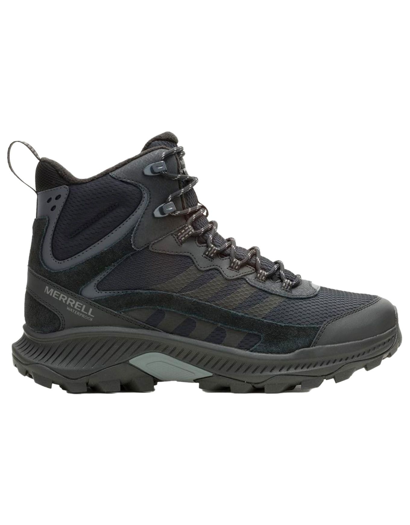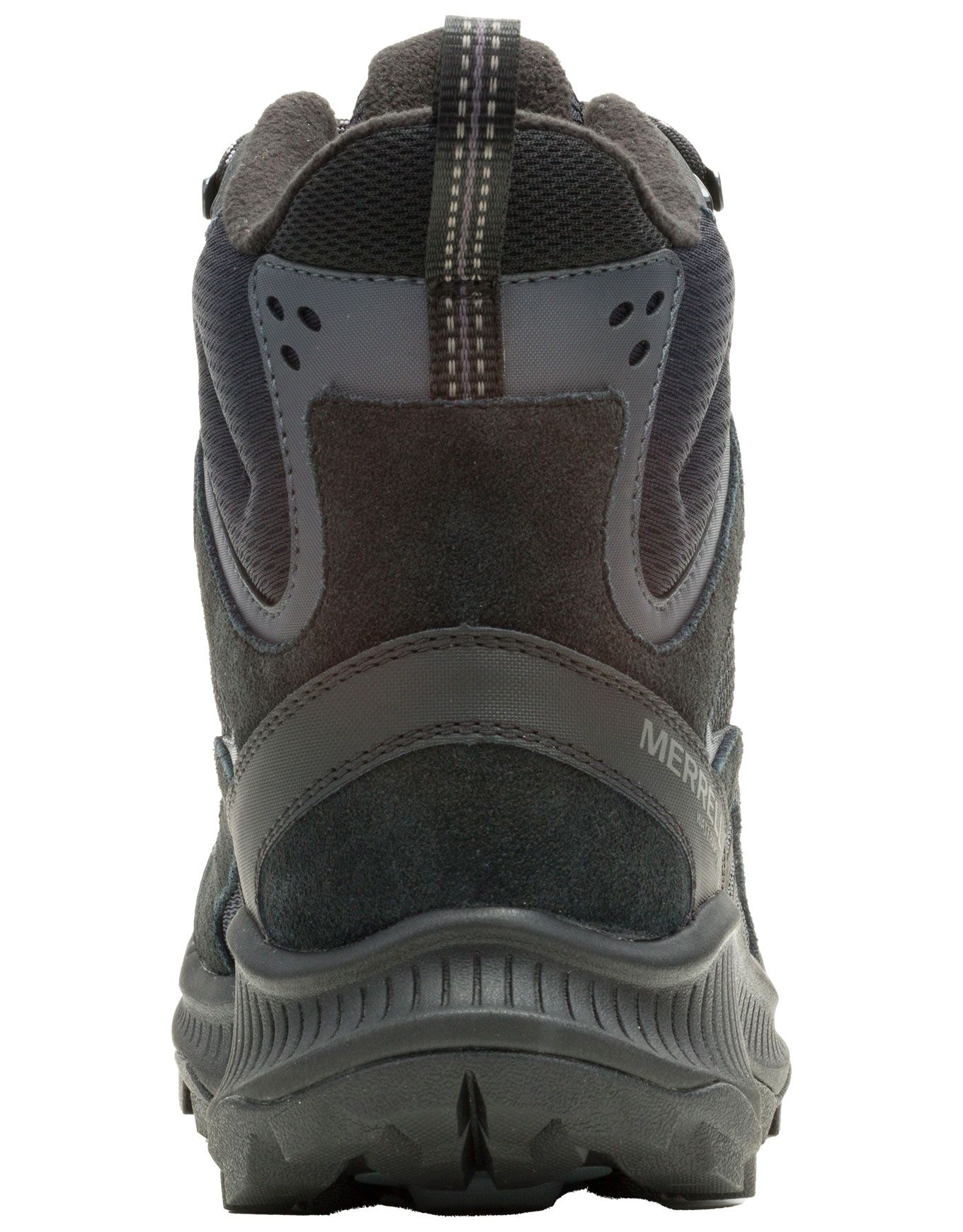 Chaussures de randonnée hivernale Merrell Speed Strike 2 Thermo Mid WP Black pour homme, membrane WP imper-respirante, isolation 200 g, col Mid stabilisant et semelle caoutchouc antidérapante.