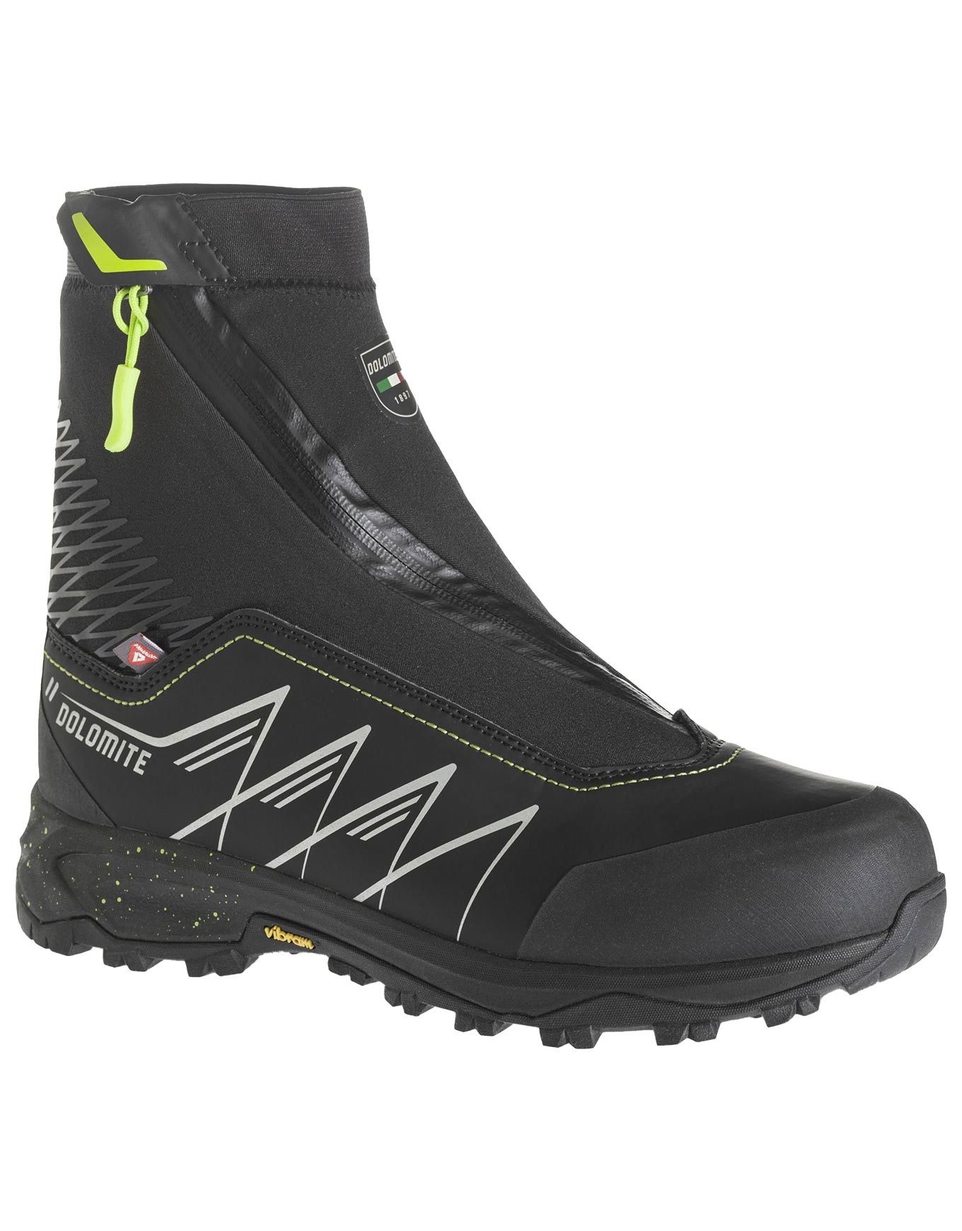 Chaussures de randonnée hivernales unisexe Dolomite Tamaskan 2.0 Black en polyuréthane enduit étanche, isolées Primaloft® et semelle Vibram® Artic Grip pour chaleur et accroche sur neige et verglas.