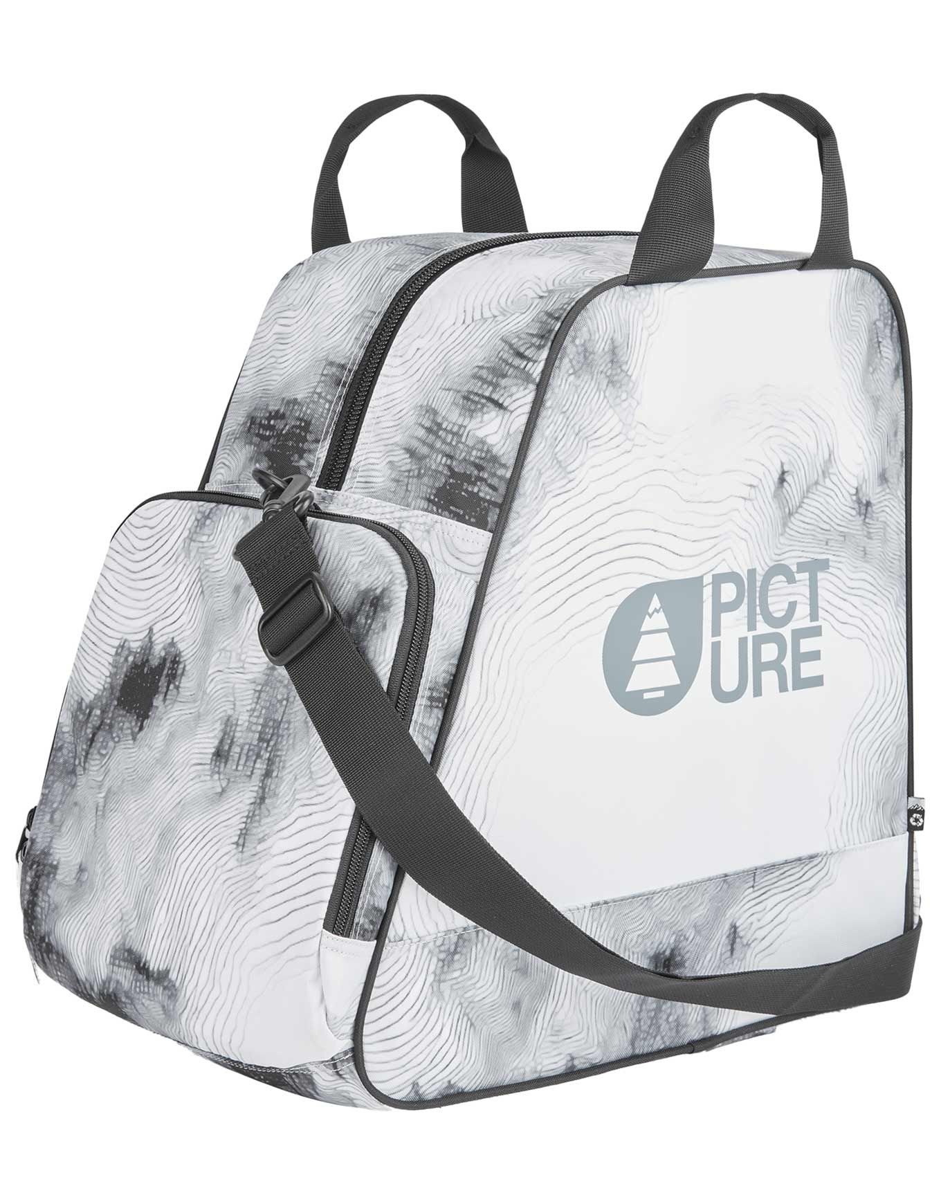 Le Shoes Bag Snowy Pine Print unisexe de Picture Organic Clothing est un sac compact pour ranger vos chaussures de ski ou boots de snowboard, doté d’une grande poche avant et d’une poignée à main.