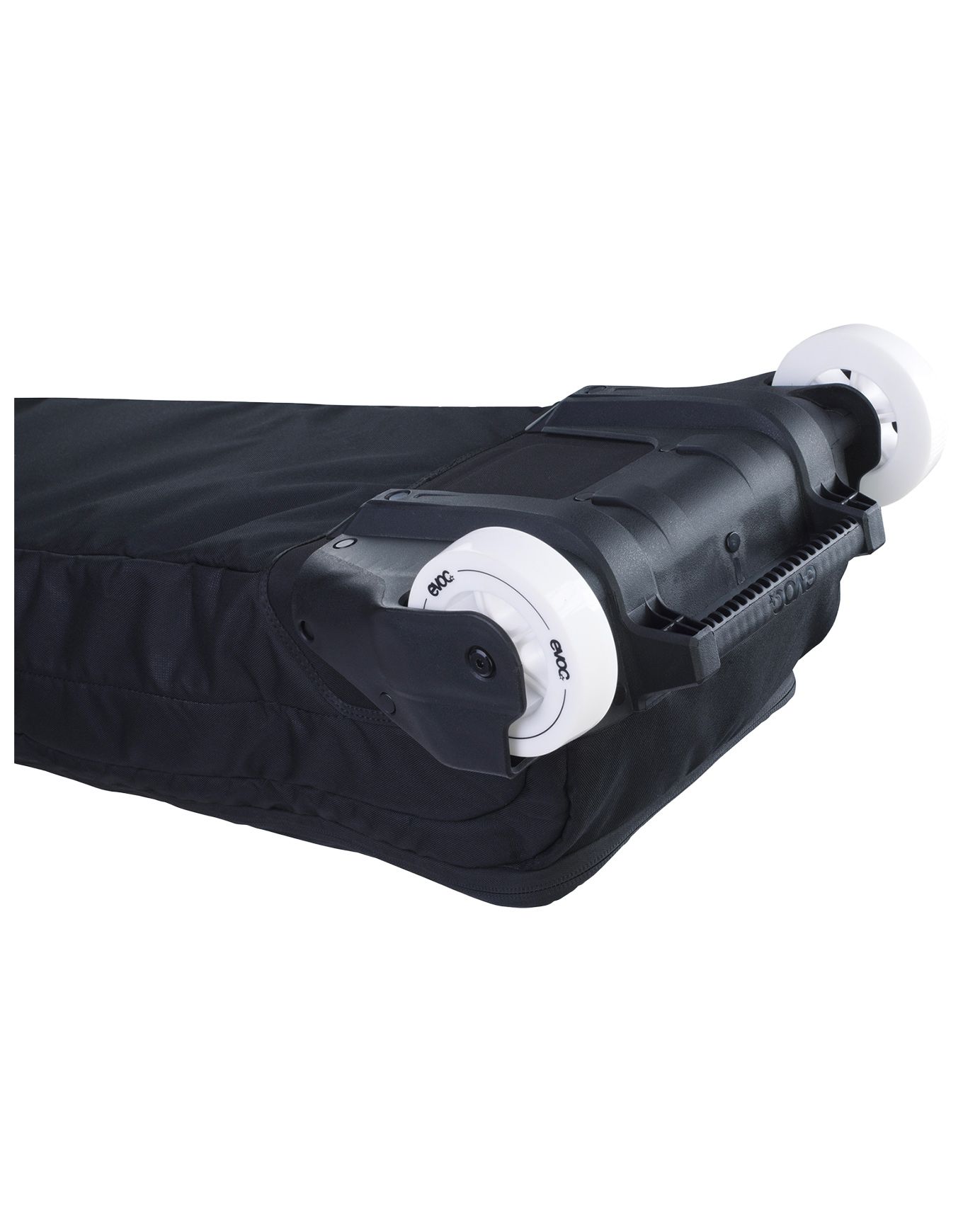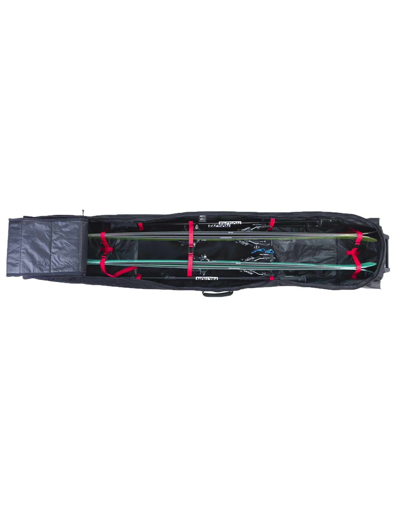 Housse de transport Evoc Ski Roller en polyester et polyéthylène, modulable, roulettes remplaçables, repliable vide, accueille 2 paires de skis 175 cm.