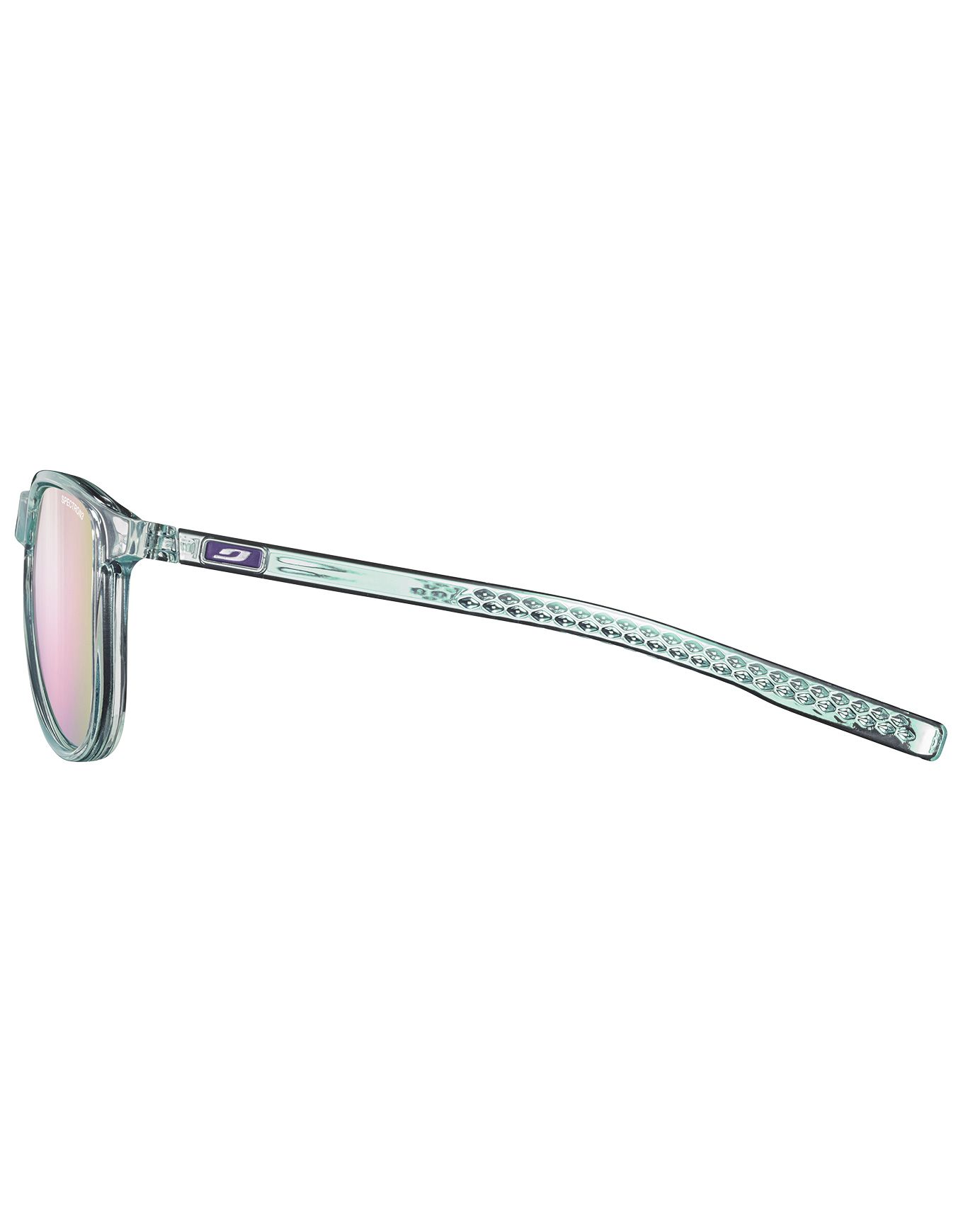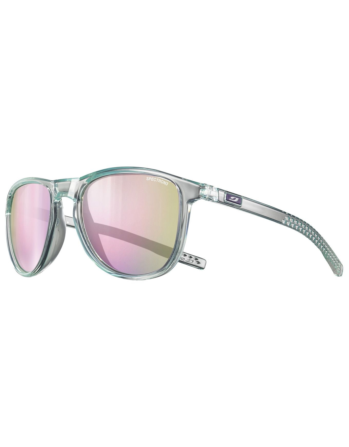 Les lunettes de soleil lifestyle Julbo Canyon Mint/Violet Spectron 3 associent protection catégorie 3, traitement antireflet et effet miroir à un design urbain pastel ; compatibles corrections RX Ready, elles assurent confort et stabilité en ville ou en randonnée.