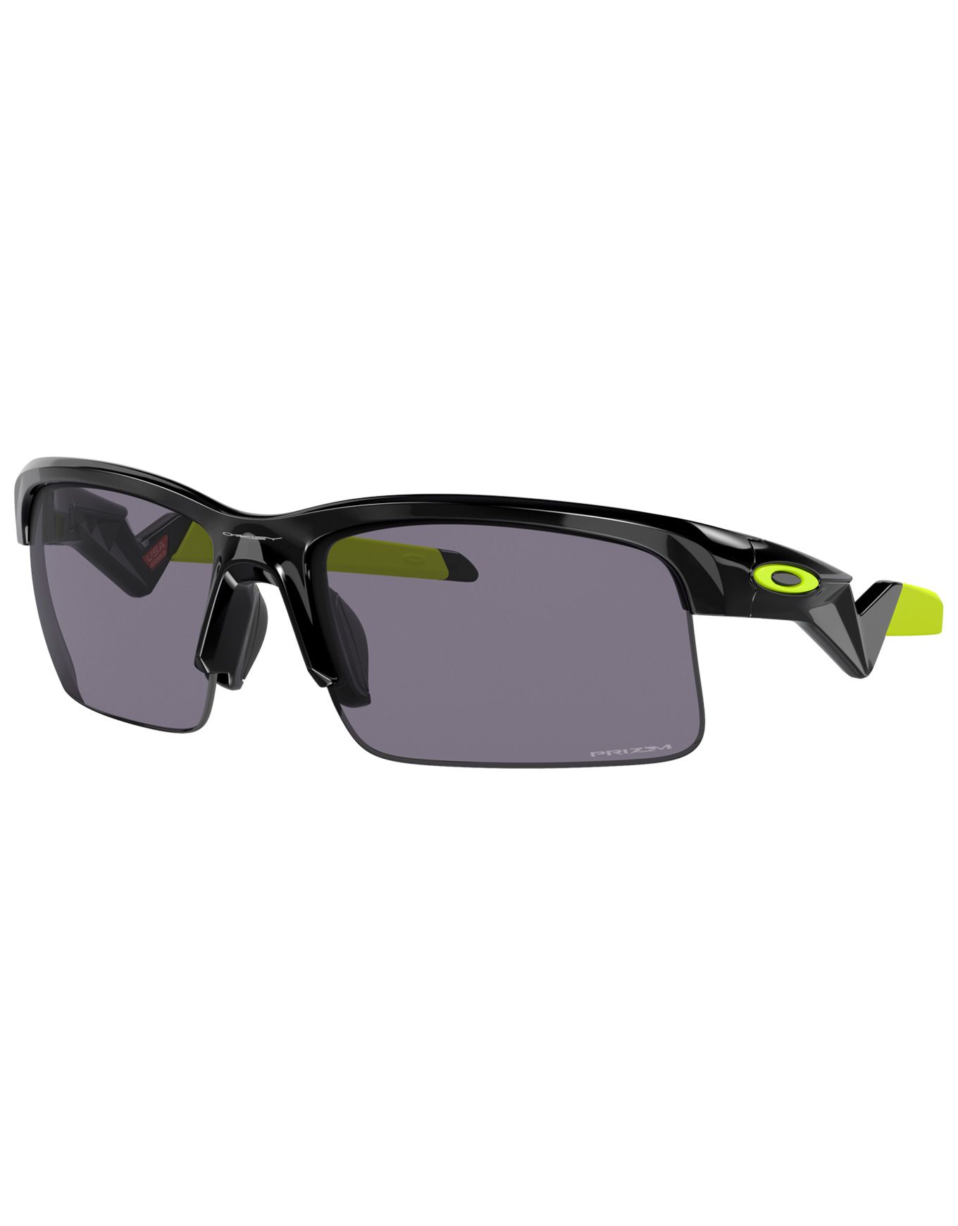 Oakley Capacitor Polished Black Prizm Grey, lunettes de soleil enfant : monture O-Matter® légère et résistante, verres Prizm™ catégorie 3 pour contrastes nets, plaquettes Unobtainium® anti-glisse.