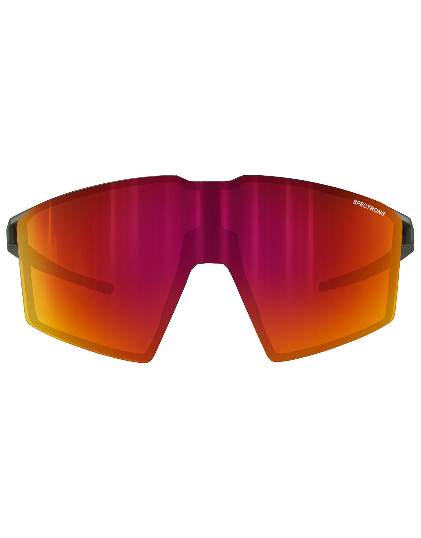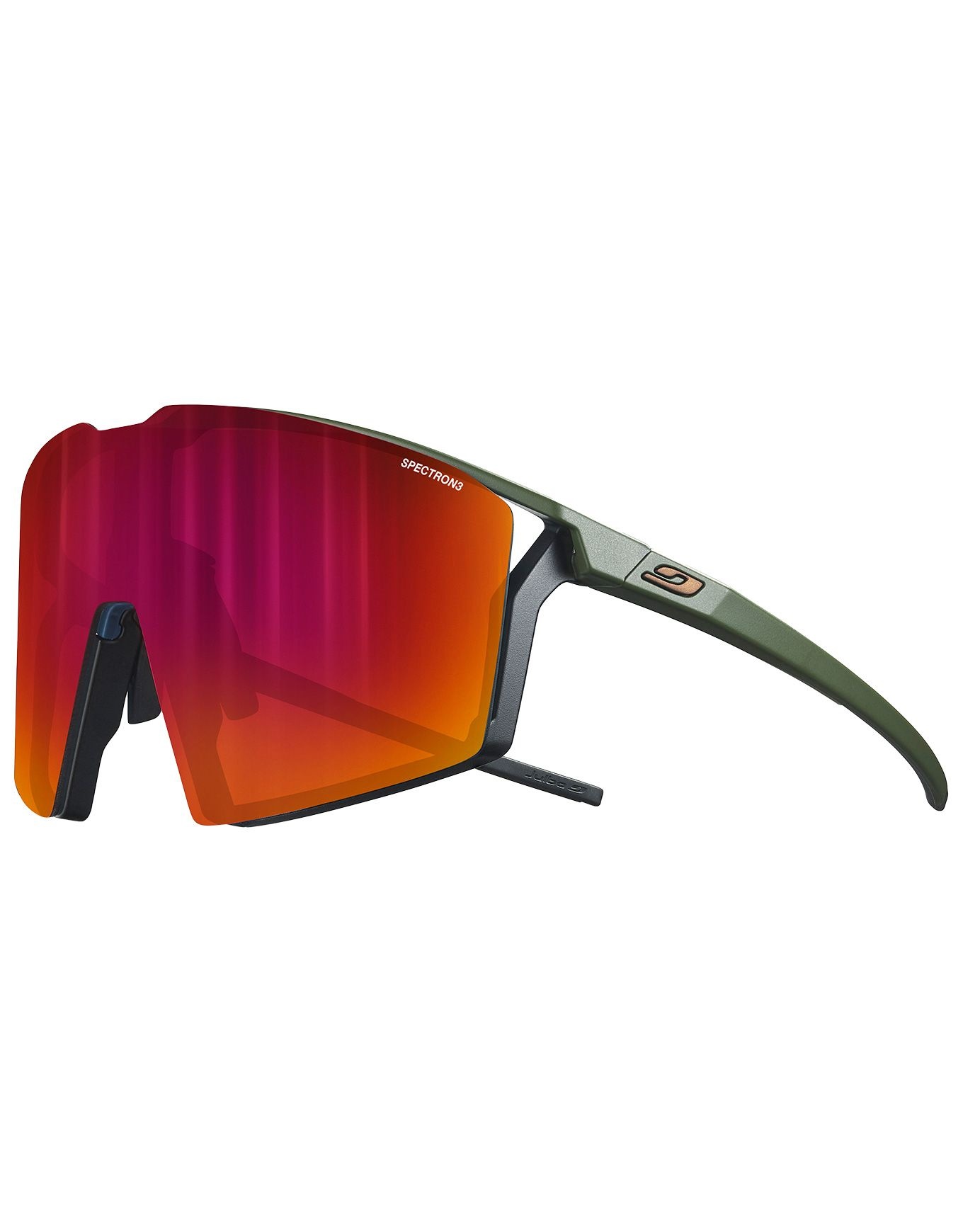 Les lunettes Julbo Edge Kaki/Noir Spectron 3 allient monture minimaliste et vision panoramique pour la performance vélo. La technologie Full Venting évite la buée, tandis que le nez 3D Fit Nose et les branches flexibles assurent un maintien parfait.