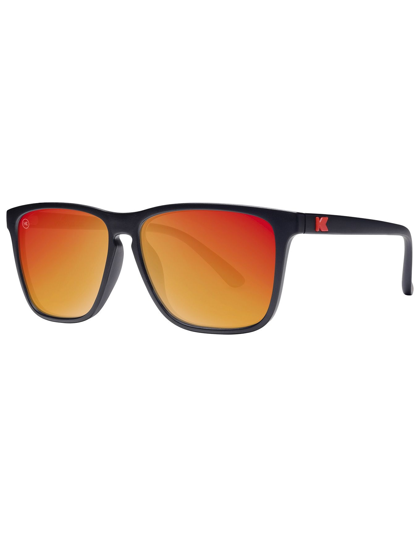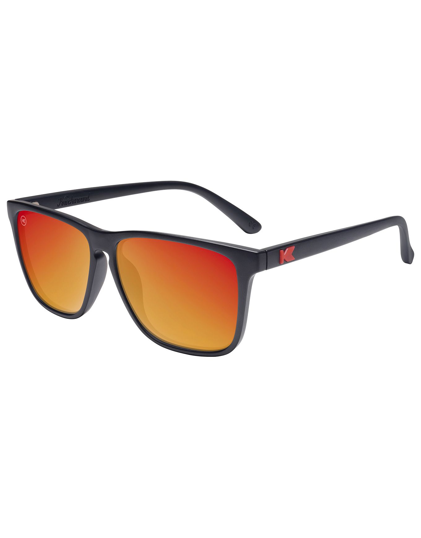 Lunettes de soleil unisexe Knockaround Fast Lanes Matte Black / Red Sunset, format M/L, verres UV 400, monture légère et durable.