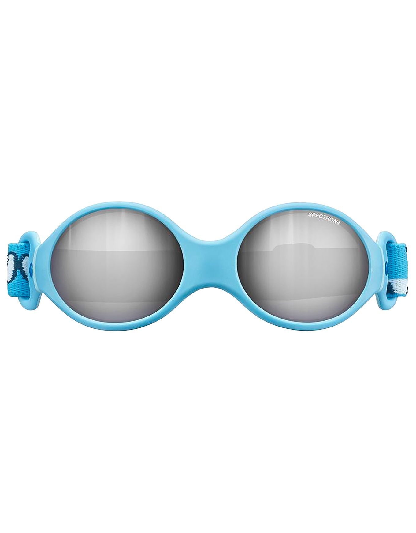 Les lunettes Julbo Loop S Bleu Clair/Bleu Spectron 4 protègent les yeux des bébés de 0 à 18 mois grâce à des verres catégorie 4 en polycarbonate, un bandeau réglable lavable et une forme enveloppante réversible.