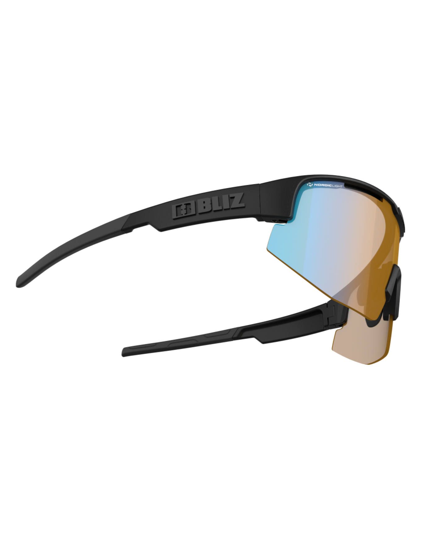 Lunettes de soleil Bliz Matrix Matt Black Nano Optics Nordic Light Coral Orange W Blue Multi, écran cat.1 Hydro Lens, vision contrastée par faible luminosité, monture TR90 ajustable, idéal vélo et ski nordique.