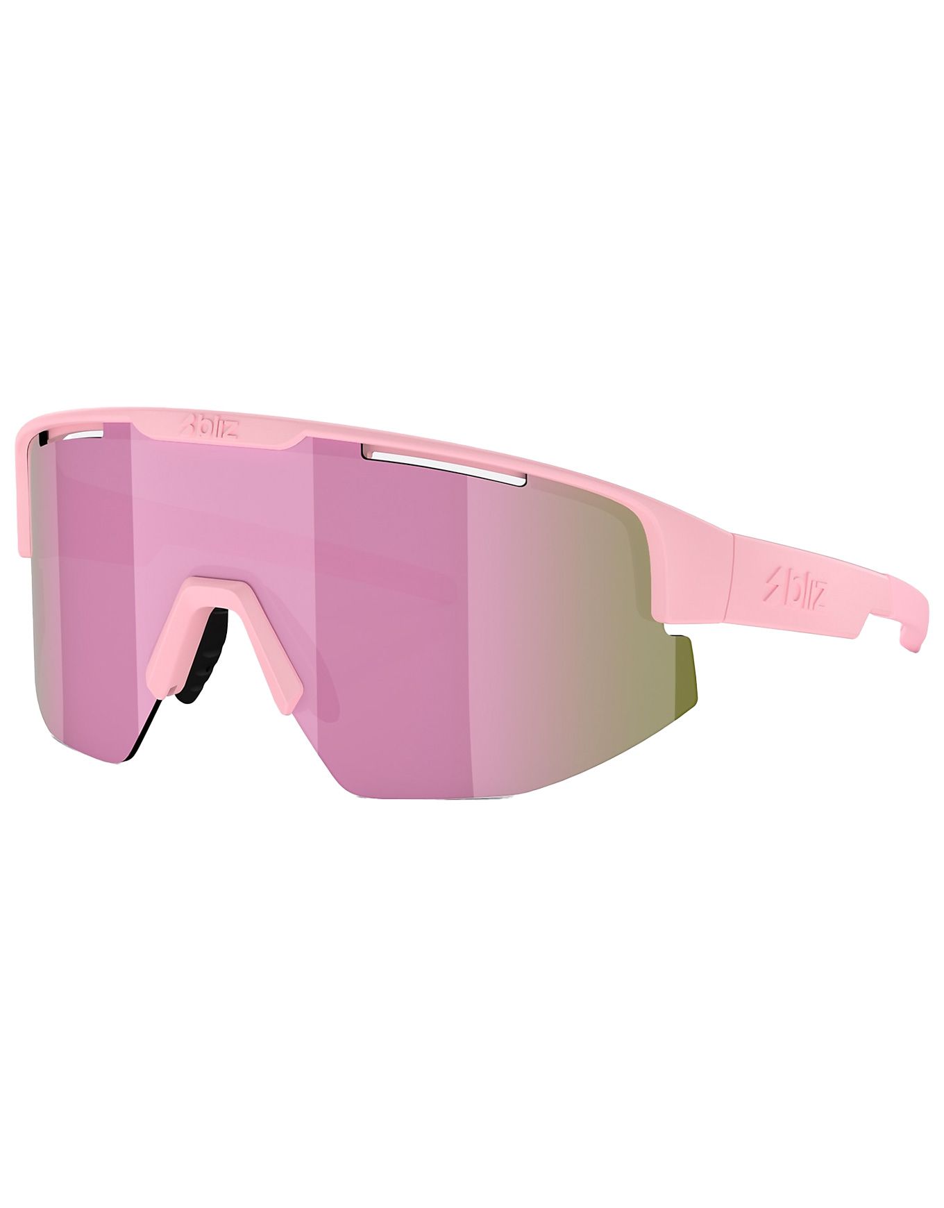 Lunettes de soleil Bliz Matrix Matt Powder Pink Brown W Rosé Multi, écran catégorie 3 Hydro Lens en polycarbonate incassable, monture Grilamid TR90 ultra-légère, branches et plaquettes ajustables pour un maintien stable vélo, ski de fond et trails.