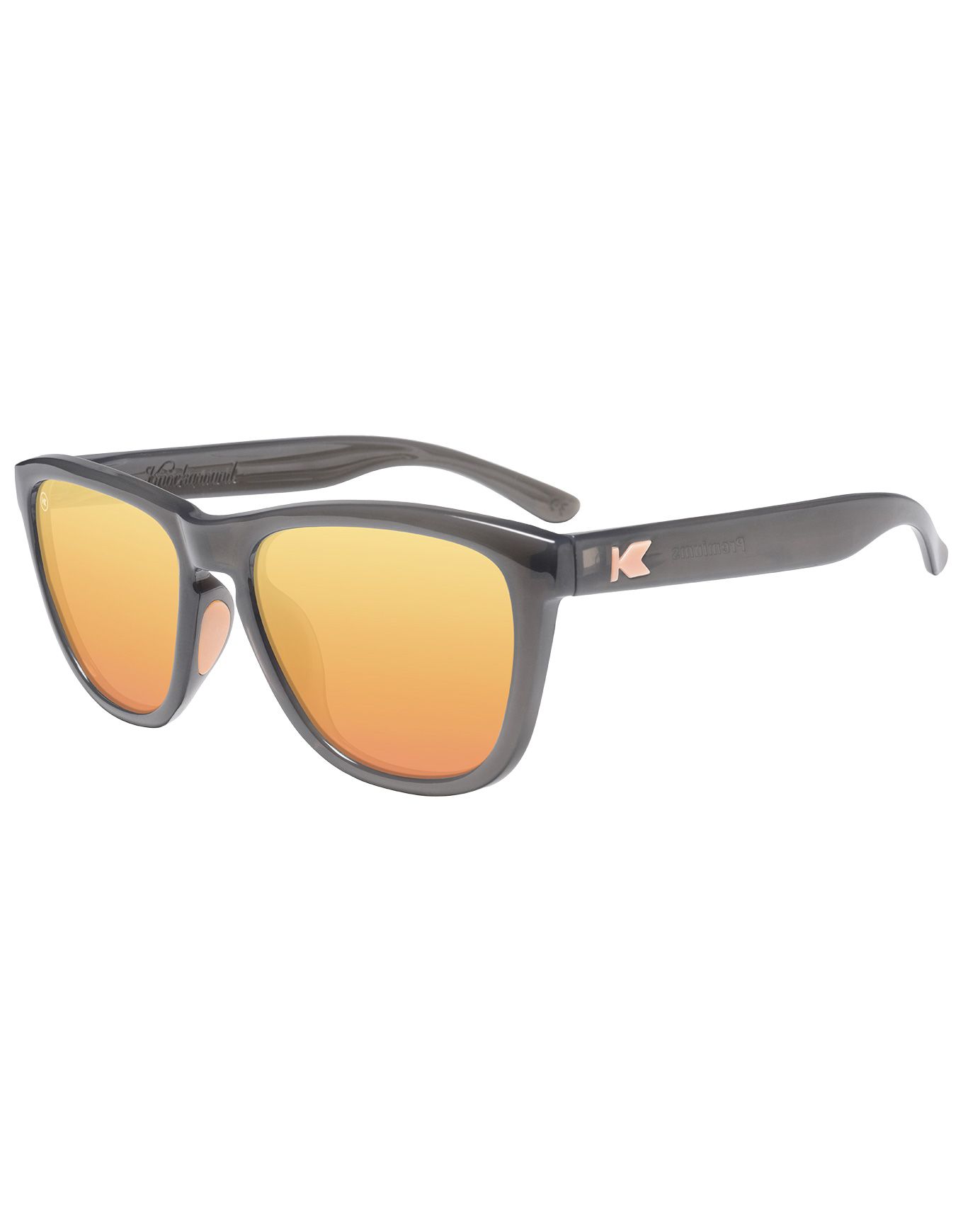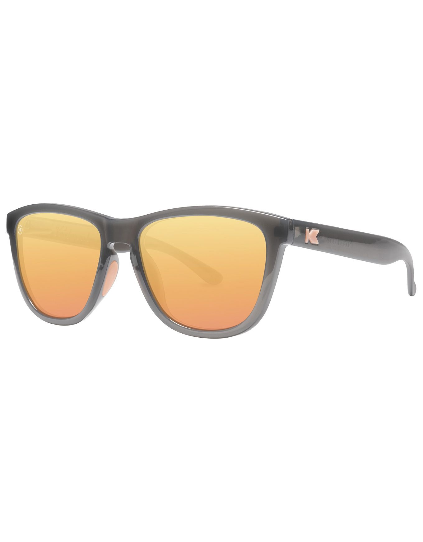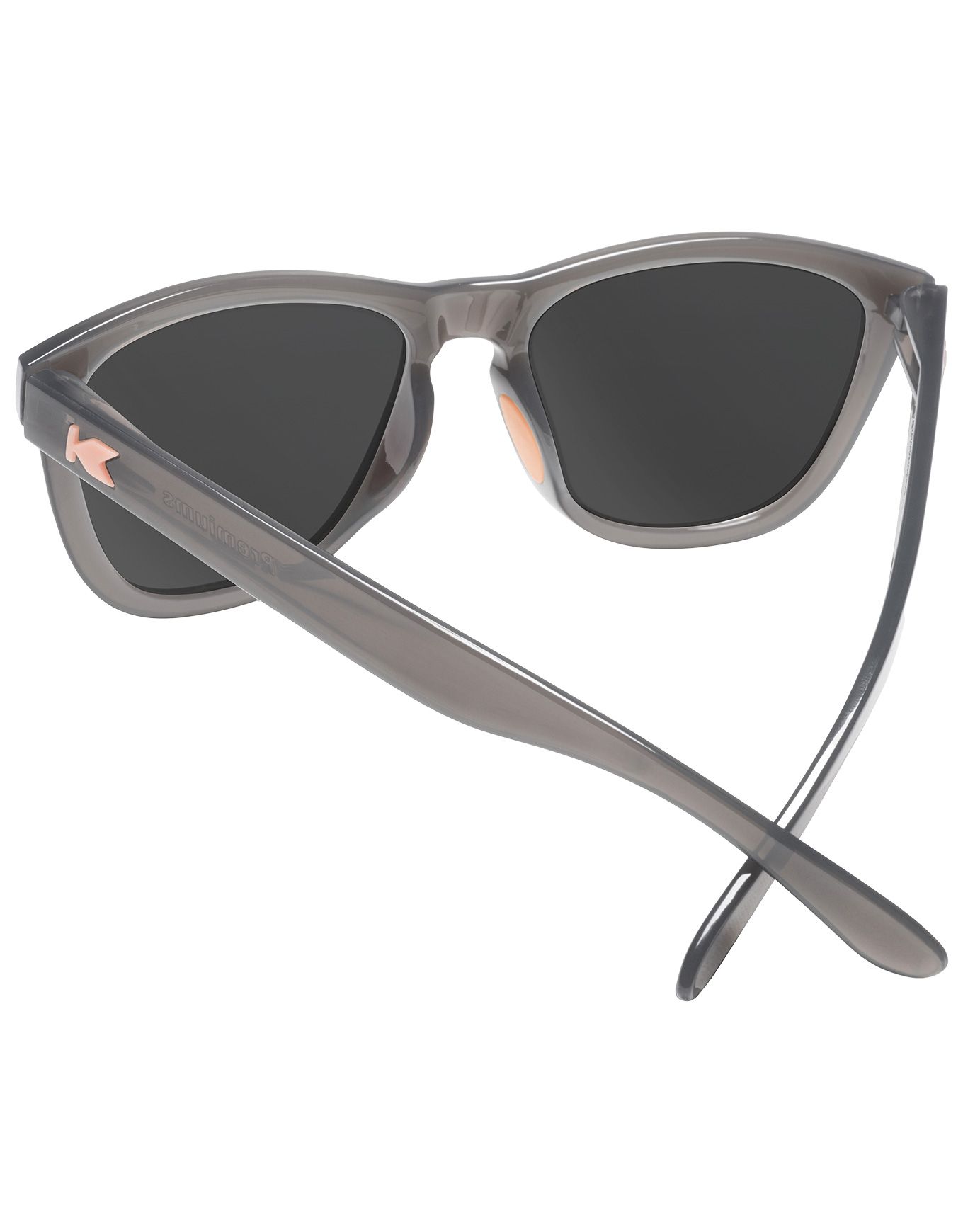 Knockaround Premiums Sport Jelly Grey / Peach, lunettes de soleil unisexes catégorie 3 polarisées, allient style rétro et légèreté. Verres UV 400, monture en silicone confortable pour surf, running et visages taille M.