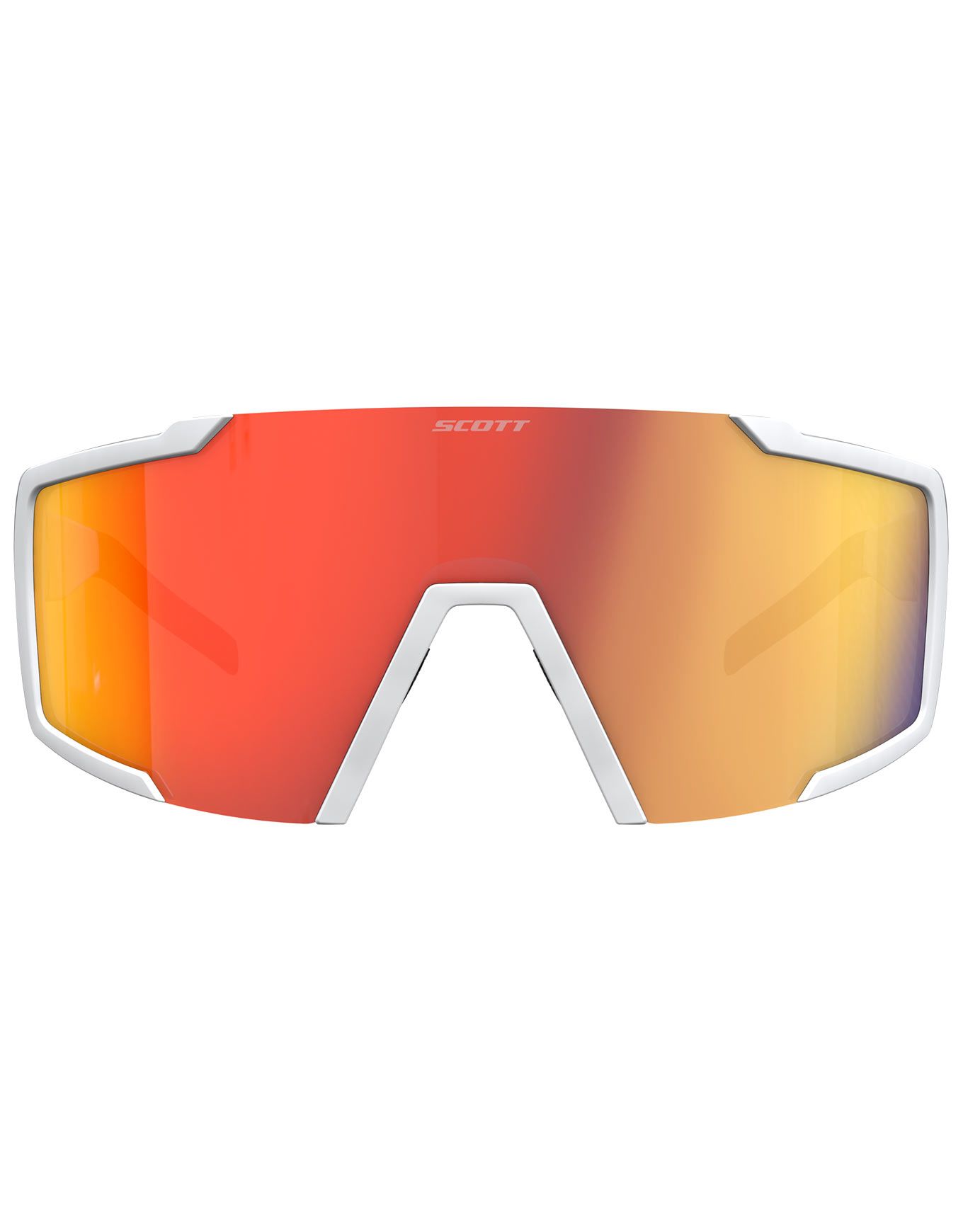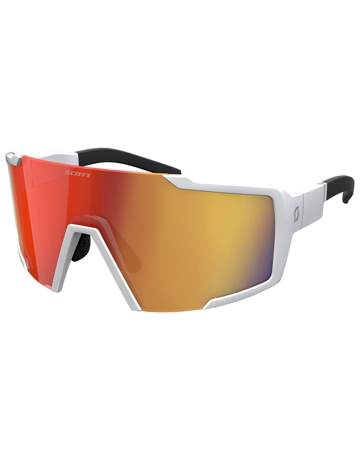 Les lunettes de soleil Scott Shield White Matt Red Chrome associent écran interchangeable catégorie 3, champ de vision large et branches antidérapantes pour une protection solaire fiable et un maintien stable en extérieur, même avec un casque.