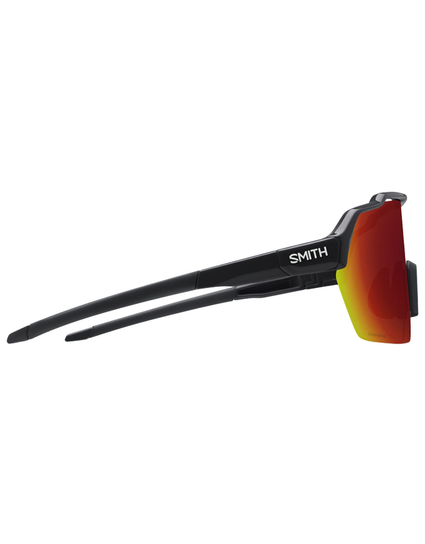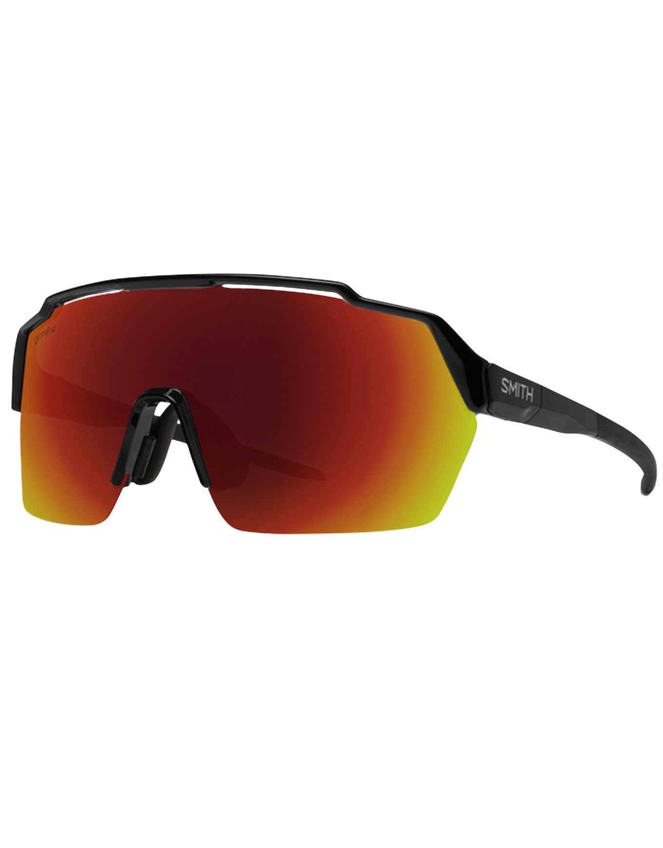 Les lunettes de soleil Smith Shift Split MAG Black ChromaPop Red Mirror conjuguent verres magnétiques interchangeables, monture légère split-fit et branches Megol antidérapantes pour le vélo de route et la course à pied.