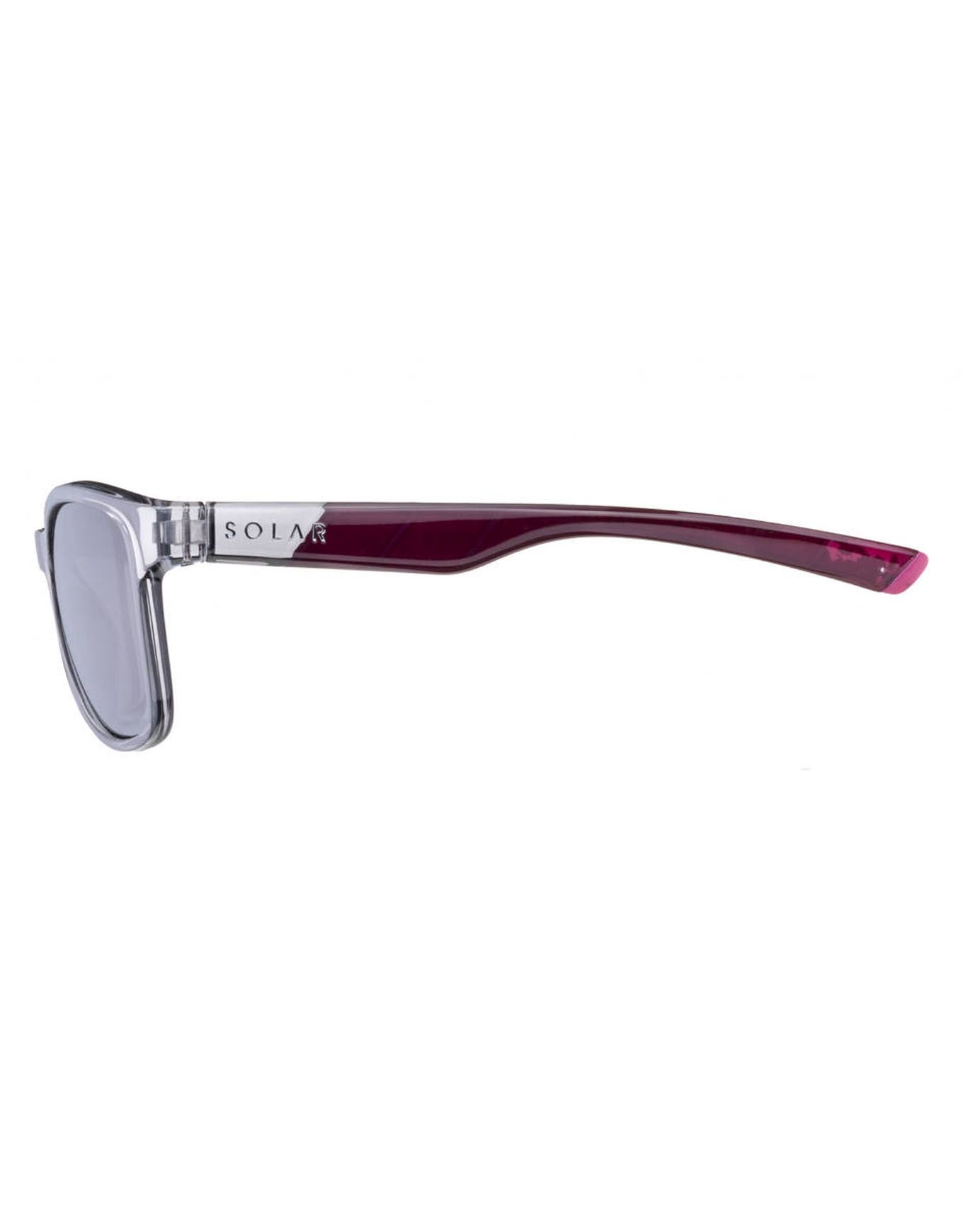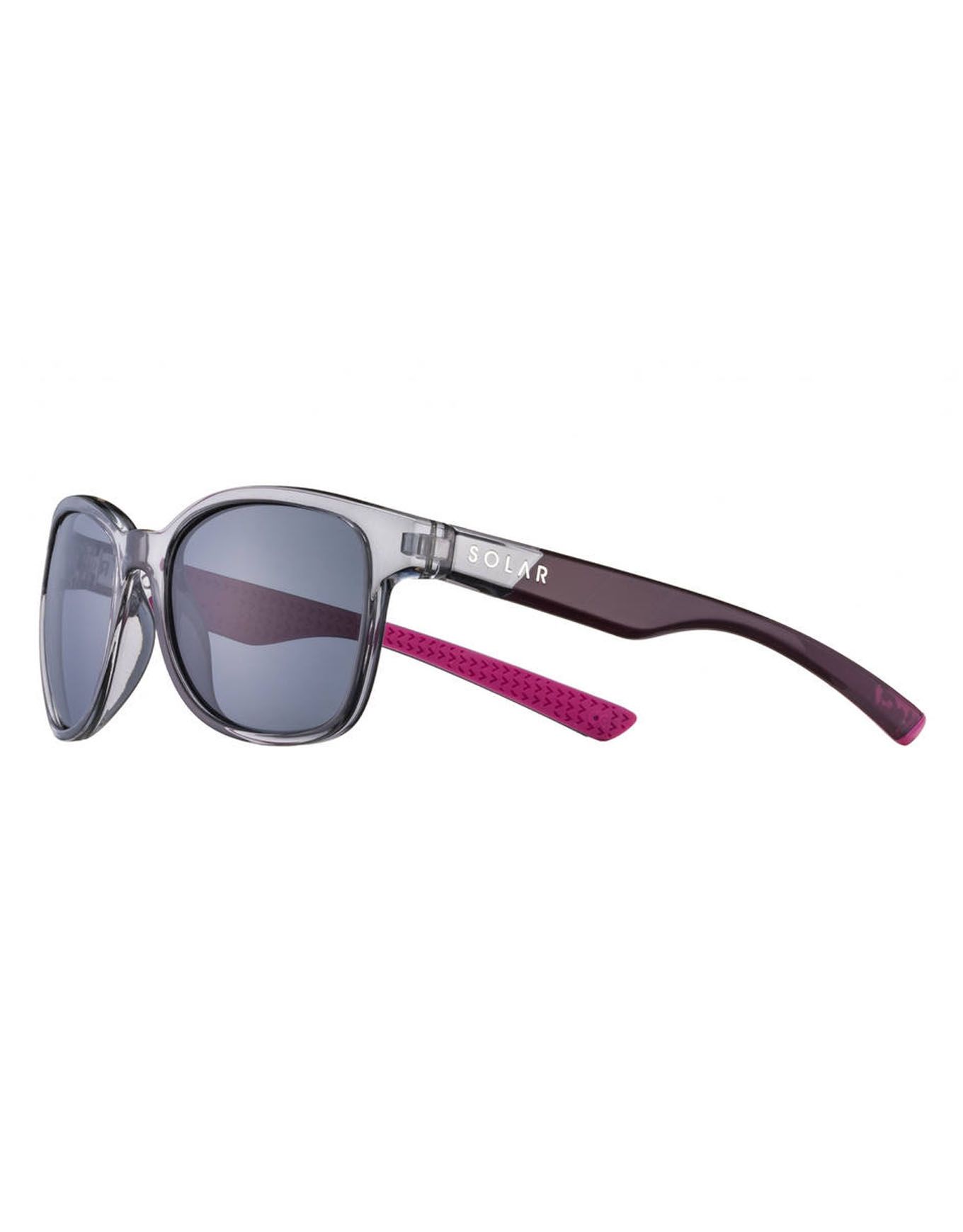 Les lunettes de soleil Solar Soledad Gris Translucide Brillant pour femme allient design chic et maintien stable grâce aux renforts caoutchoutés des branches. Leurs verres polarisants catégorie 3 protègent des reflets et améliorent contrastes pour le vélo, la rando ou la course.