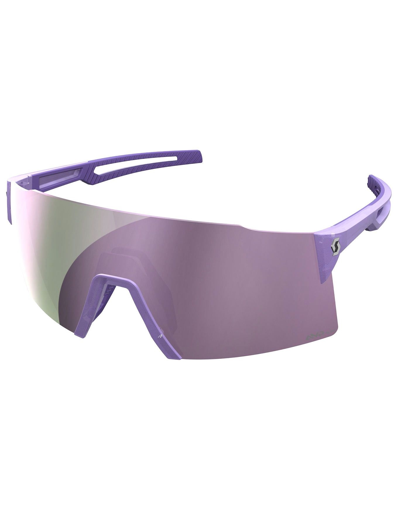 Lunettes de soleil de sport Scott Stride Compact Swish Purple AMP Lavender Chrome S3, conçues pour les visages fins, 27 g seulement, verres catégorie 3, technologie Amplifier, protection UV 100 % et écran interchangeable.