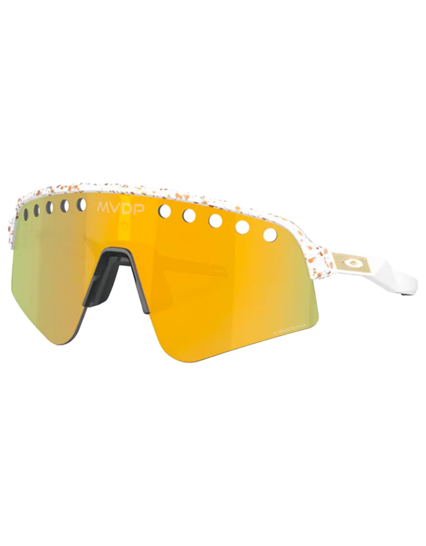 Oakley Sutro Lite Sweep Mvdp Red Gold Splatter Prizm 24k, lunettes de soleil cyclisme, offrent monture O-Matter légère, grip Unobtainium, ventilation par verres percés et vision contrastée Prizm 24k catégorie 3.