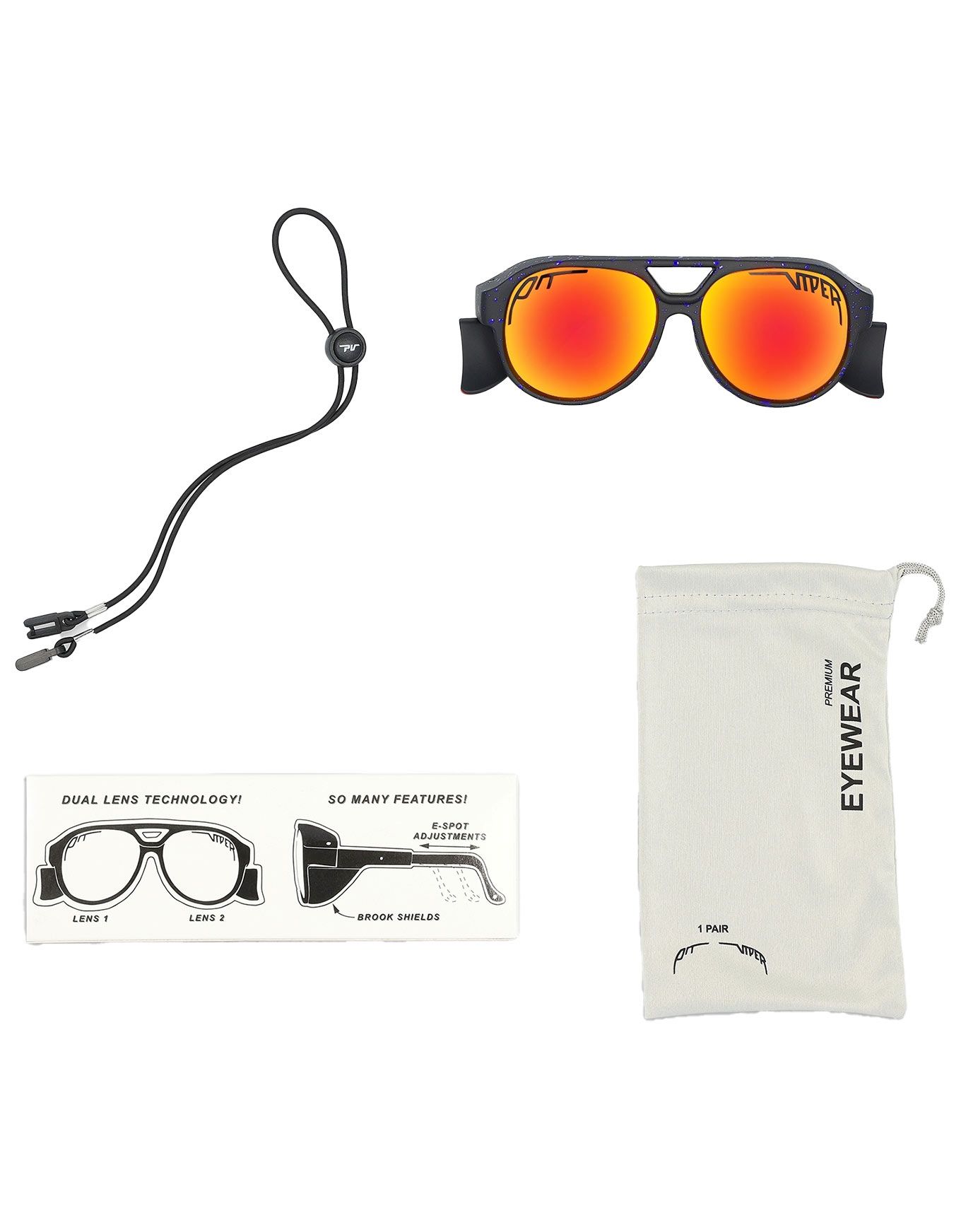 Lunettes de soleil Pit Viper The Combustion Exciters Polarized avec verres polarisés catégorie 3 en polycarbonate Z87+, monture grip antidérapant et élastique optionnel pour tenue optimale en toute activité.