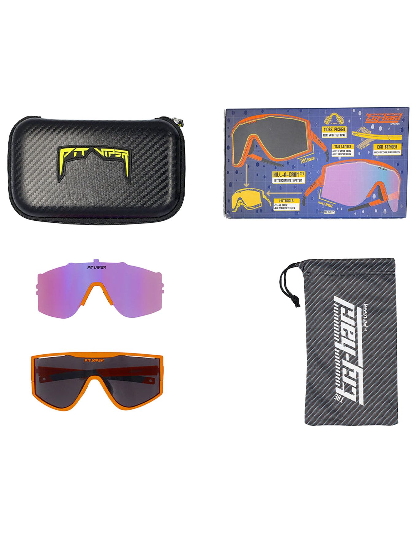 Les lunettes Factory Team Try-Hard de la marque Pit Viper Ces lunettes font partie de la collection Try-Hard, spécialement développée pour la pratique sportive. La protection totale contre les UV-A et UV-B est assurée par un verre de catégorie 3, parfaitement adapté aux journées ensoleillées. Pour une utilisation par temps couvert ou en salle, un verre supplémentaire de catégorie 1 est inclus dans le kit.
