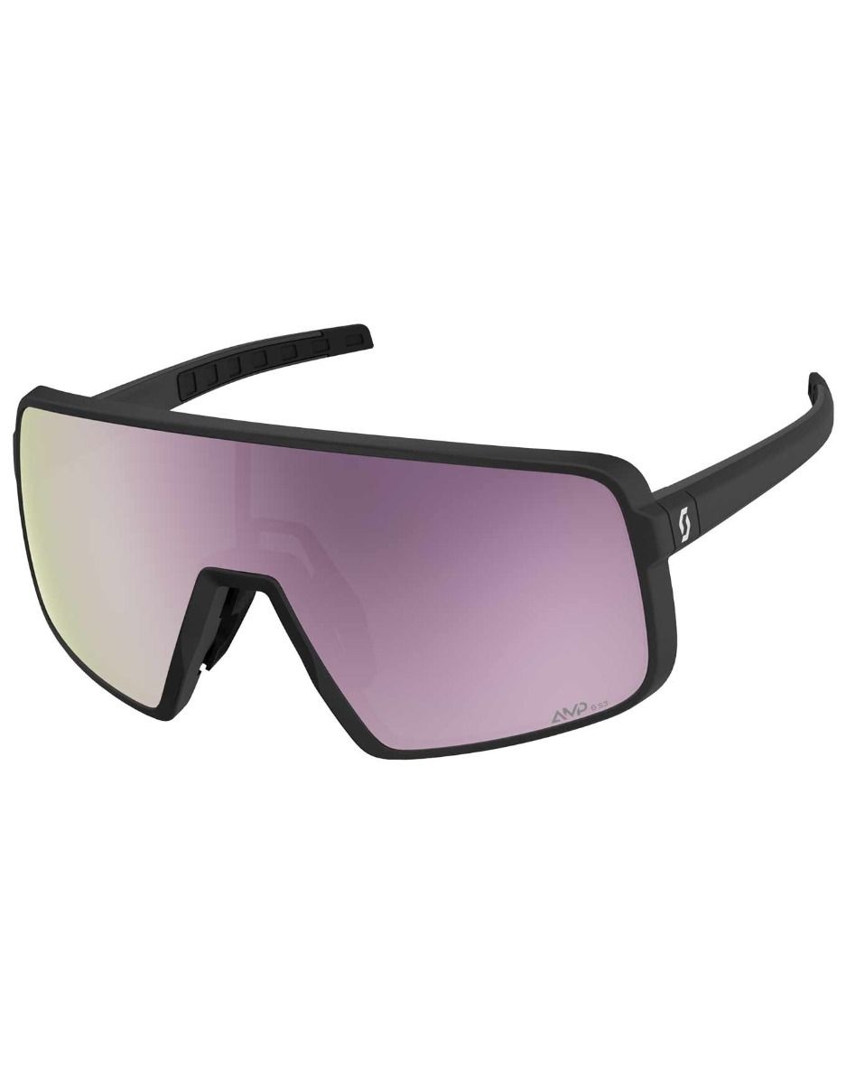 Scott Torica Black AMP Lavender Chrome S3, lunettes de soleil taille P/M, écran extra-large interchangeable, protection vent et débris, compatibles casque, support nasal réglable et branches antidérapantes.