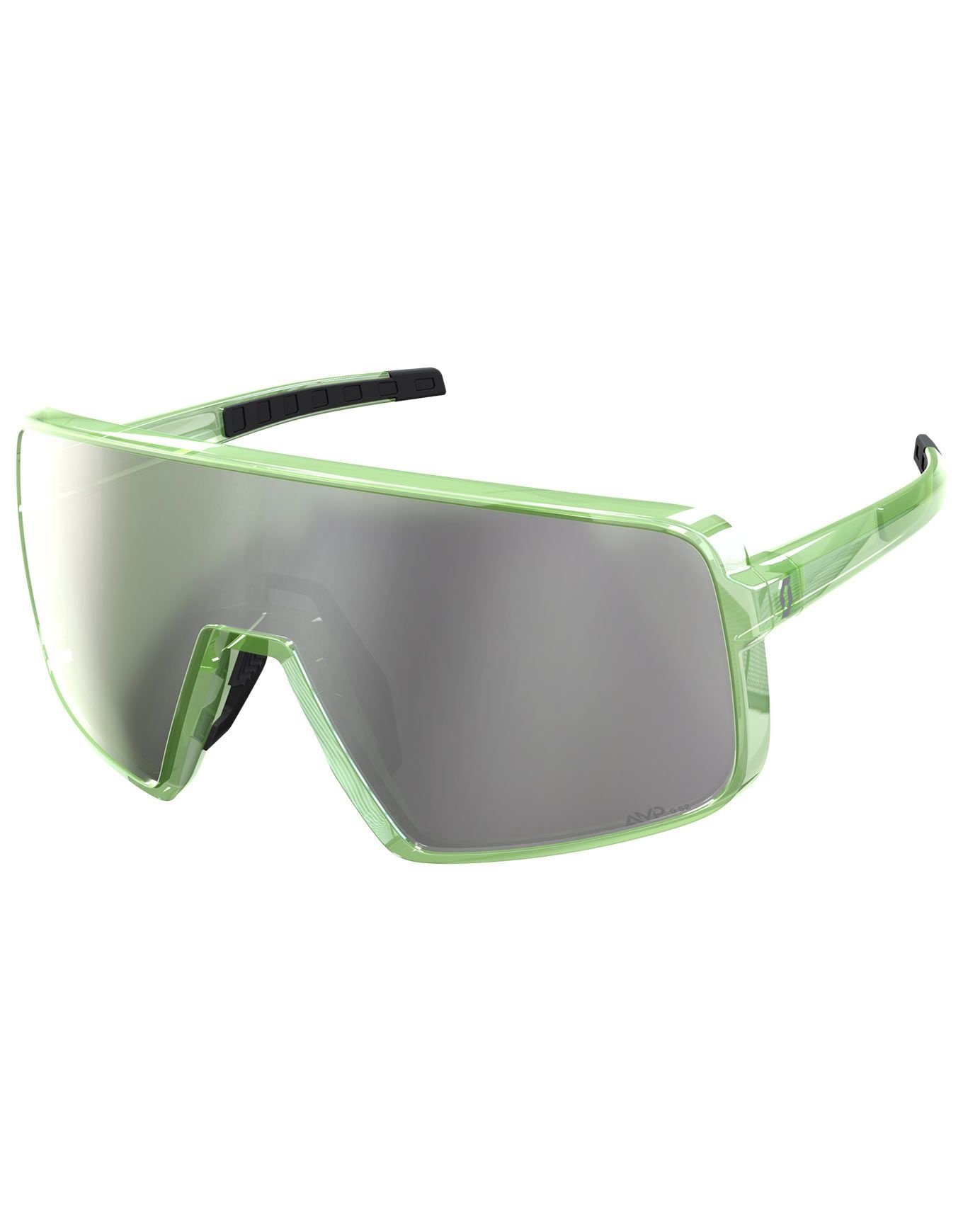 Scott Torica Luminary Green AMP White Chrome S2, lunettes de soleil taille P/M, écran extra-large interchangeable, protection vent et débris, compatibles casque, nez réglable et branches antidérapantes.