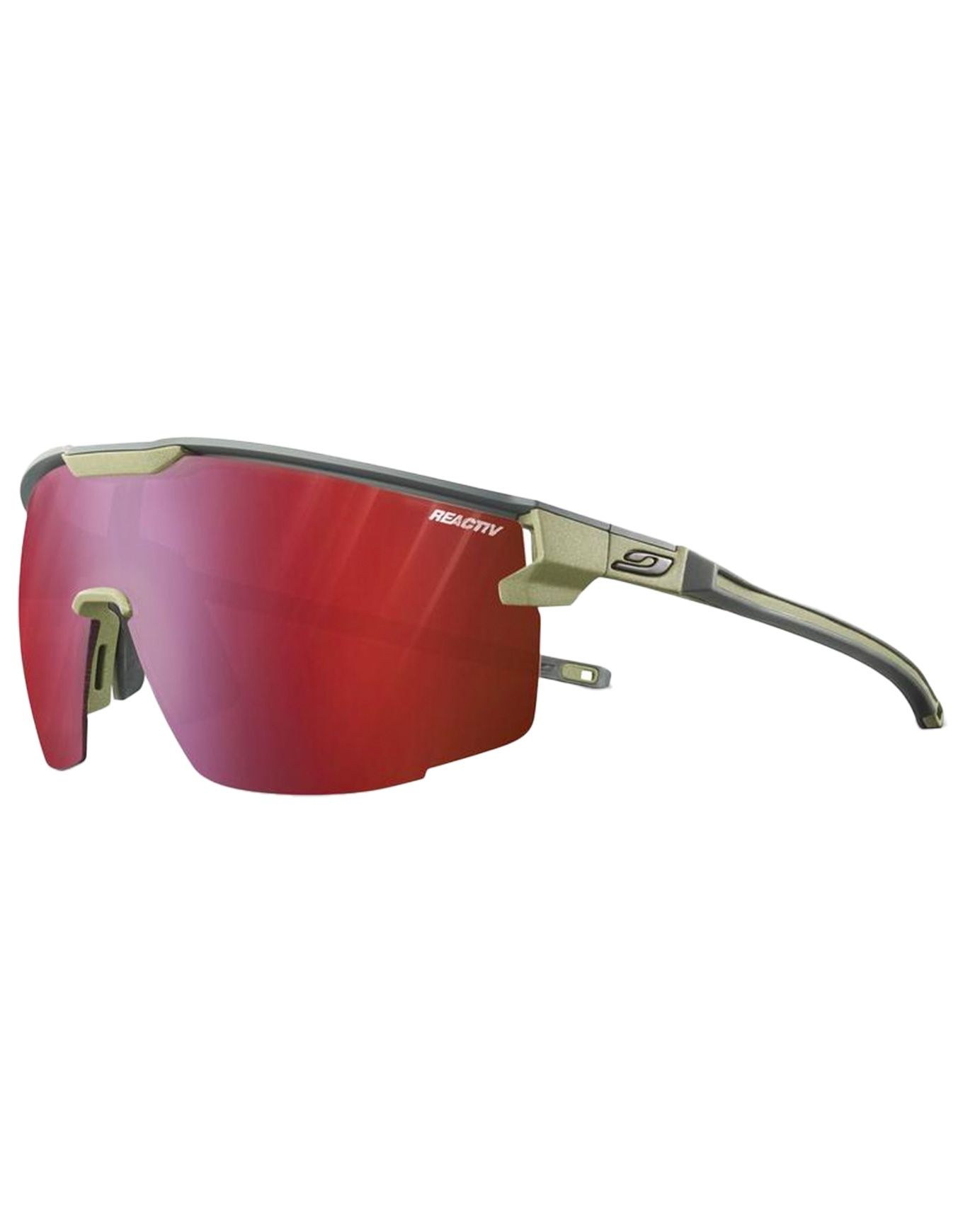 Lunettes de soleil Julbo Ultimate Reactiv 0-3 High Contrast pour sportifs exigeants, avec écran photochromique adaptatif, branches CustomFit ajustables, nez 3D Fit et Grip Tech pour un maintien stable en effort. Vision contrastée et relief net dans toutes les luminosités.