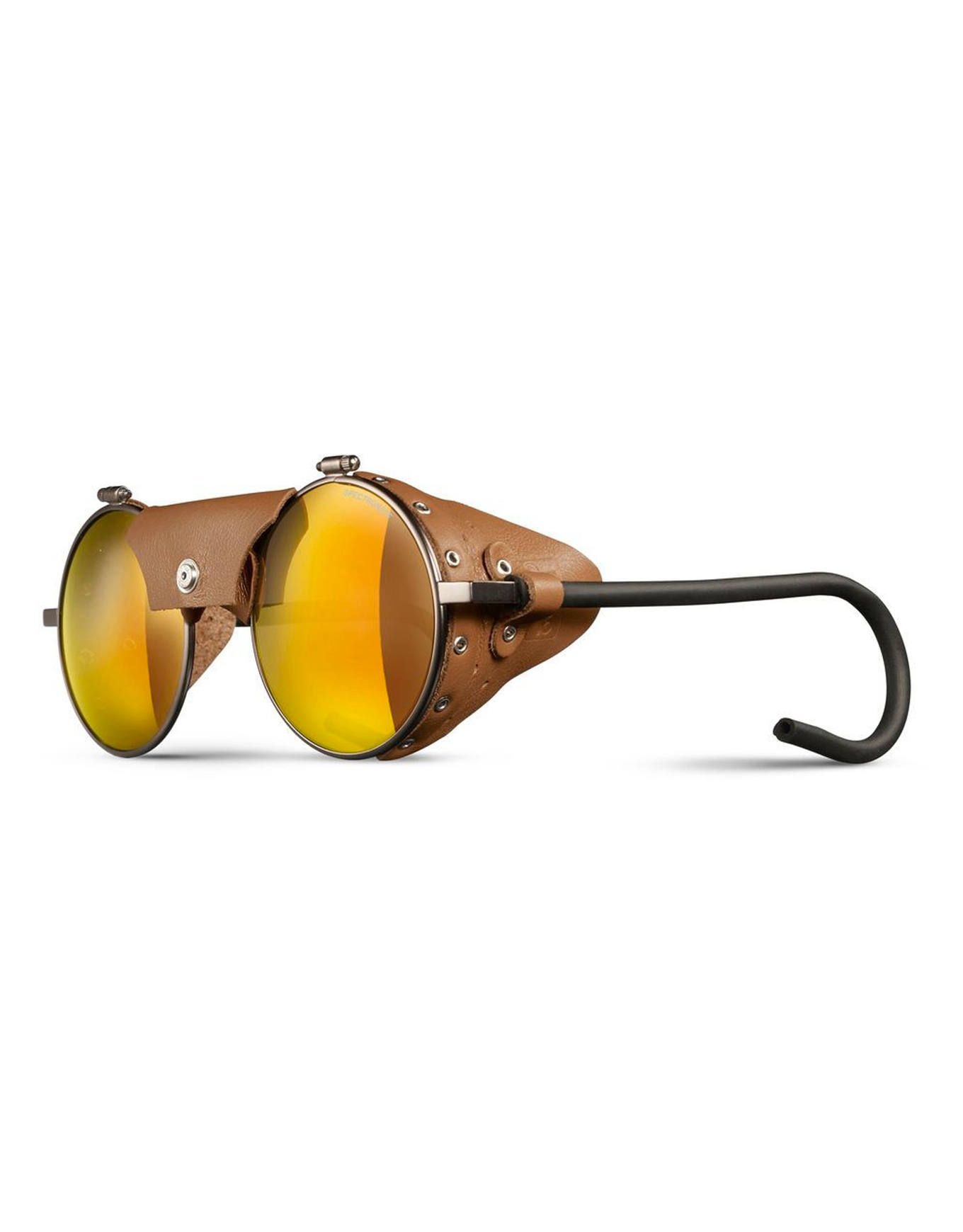 Par ailleurs, une protection solaire renforcée est assurée par les coques latérales ainsi que par le nez cuir, éléments si typiques de ces lunettes glacier classiques, essentiels lors de l’ascension des plus hauts sommets. Cette monture légendaire est complétée par des verres Spectron catégorie 3, offrant une protection optimale contre les rayons solaires, parfaitement adaptée à l’ensemble de vos activités outdoor.