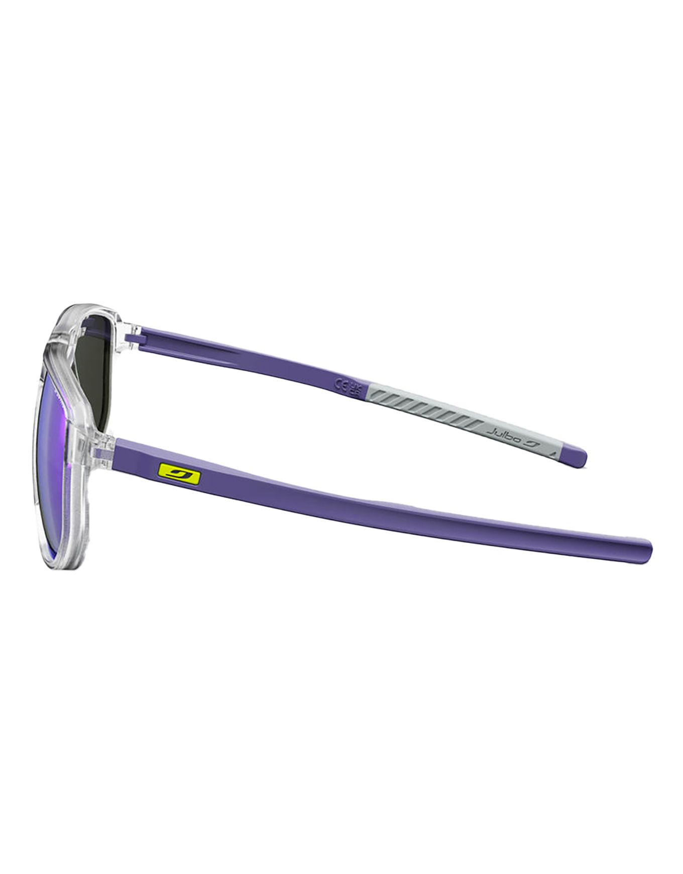 Les lunettes de soleil Julbo Ward Cristal/Violet Spectron 3 combinent monture rectangulaire robuste, branches Grip Tech et nez Grip Nose pour un maintien fiable en activité. Leurs verres polycarbonate catégorie 3, antireflet et miroir, filtrent efficacement les reflets par fort ensoleillement et sont compatibles correction RX Lab.