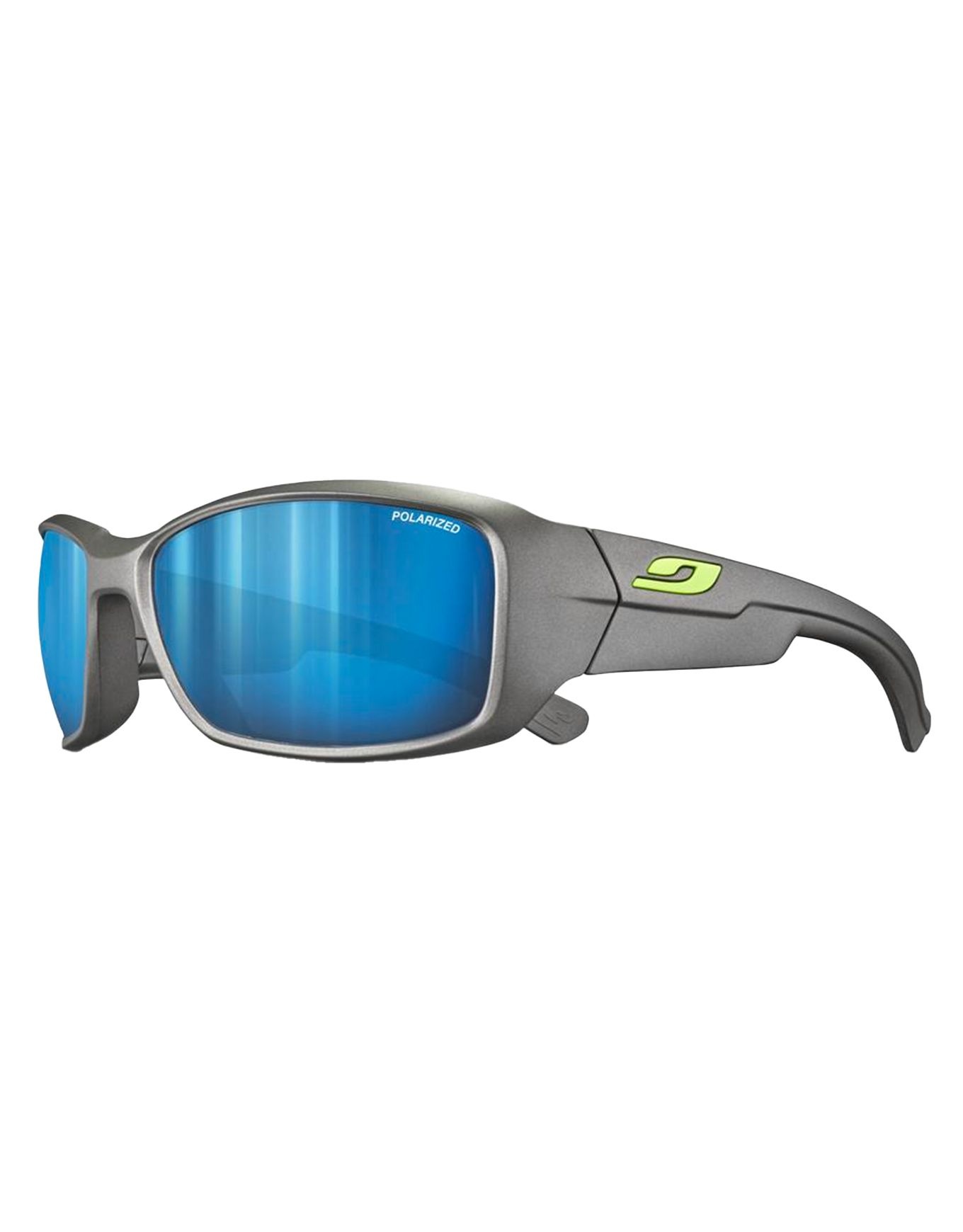 Les lunettes de soleil Julbo Whoops Gris Titane Spectron 3 Polarized protègent les visages fins grâce à leur monture enveloppante et leurs verres polarisés catégorie 3, offrant vision nette et confort durable en plein air.