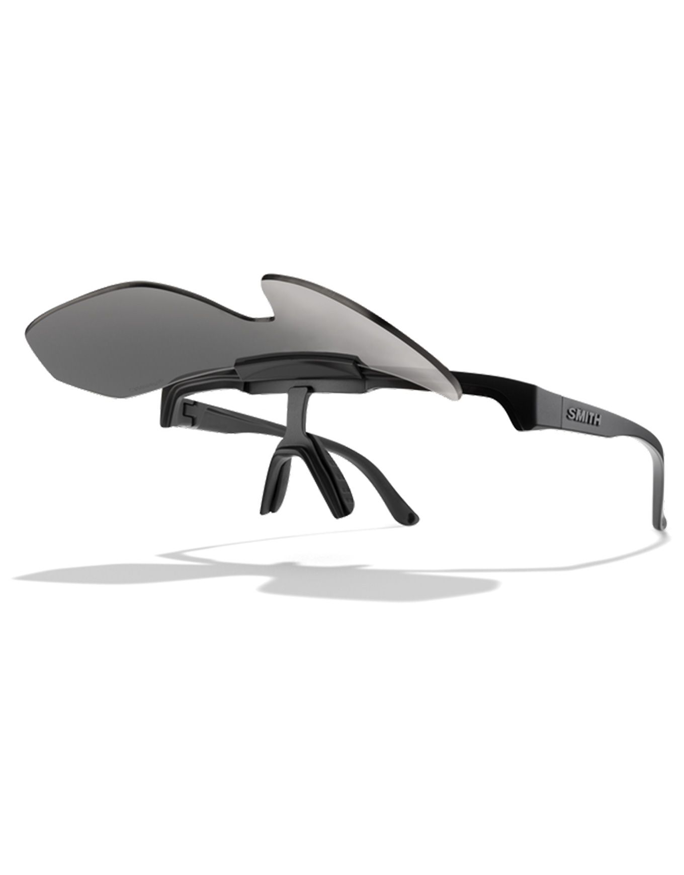Les lunettes de soleil Smith Xc, à lentille rabattable, combinent verres polarisés ChromaPop™ pour un contraste naturel précis, branches et plaquettes Megol antidérapantes, charnières AutoLock et ventilation anti-buée.