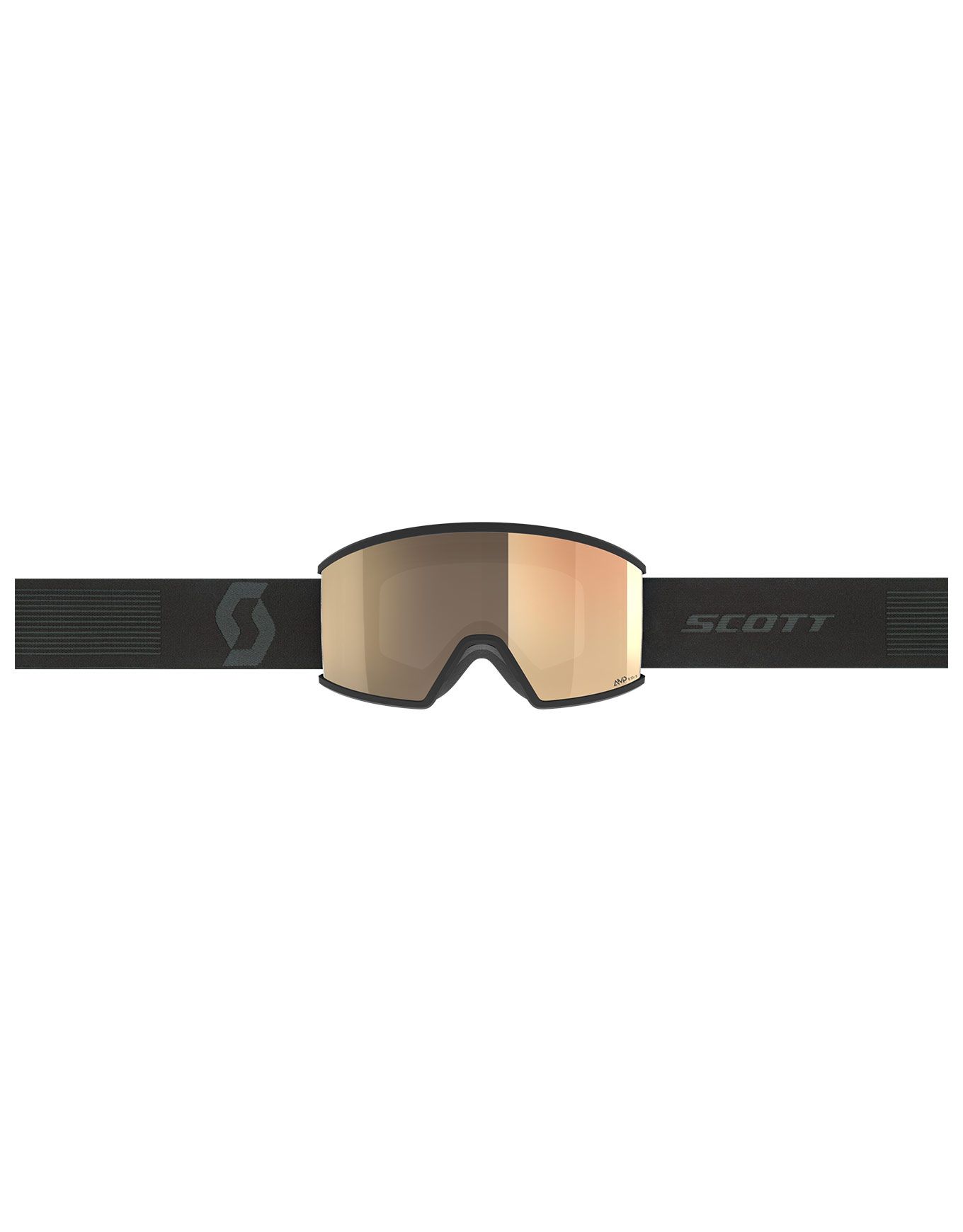 Masque de ski Scott Ambit LS Mineral Black AMP LS Bronze Chrome S1-3 avec lentille photochromique Light Sensitive cat. 1-3, traitement anti-buée NoFog™, mousse triple couche et sangle silicone antidérapante pour vision claire et confort durable.