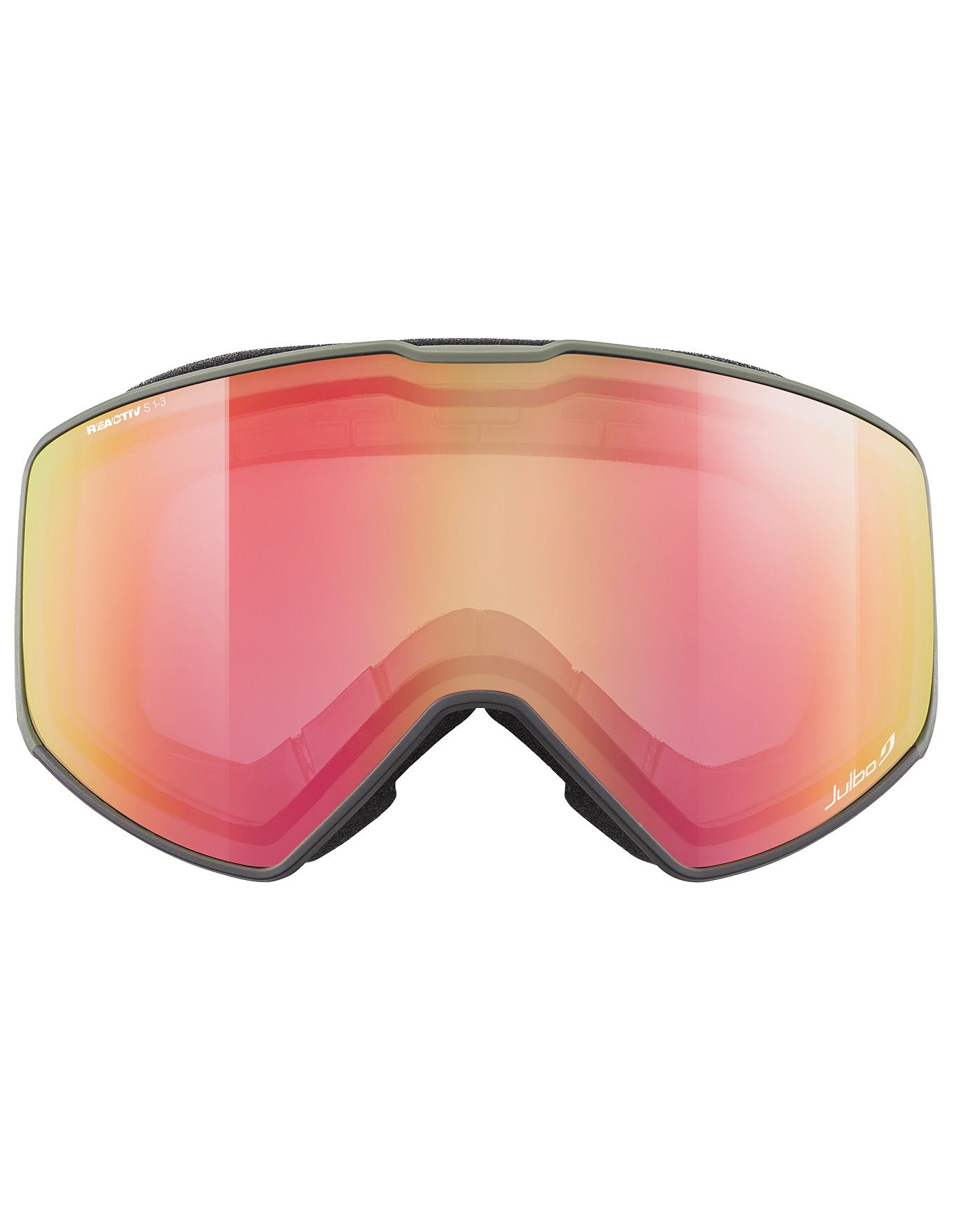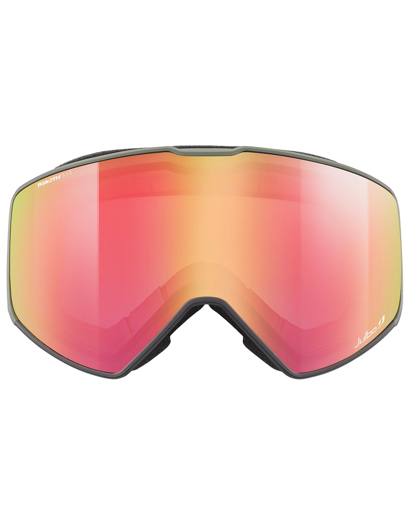Une buée est évitée grâce au système Air Flow intégré dans la monture, assurant une circulation d’air adéquate. Doté d’une technologie Reactiv, l’écran cylindrique photochromique s’ajuste automatiquement à la luminosité ambiante (passant de la catégorie 3 à 1), permettant une vision optimale quelles que soient les conditions. Le traitement antibuée assure une clarté de vision lors des descentes rapides en piste.