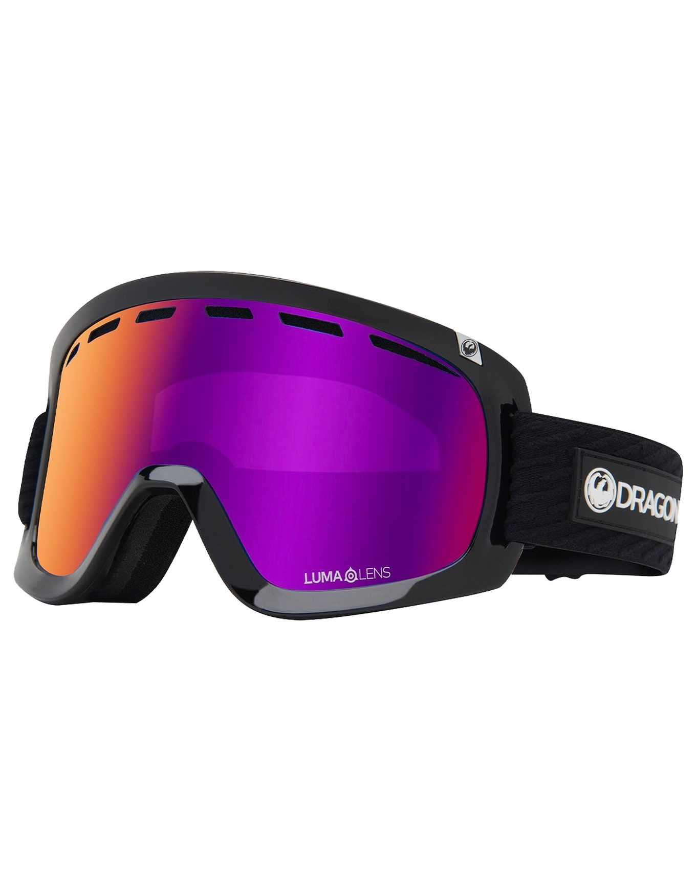 Masque de ski Dragon D1 OTG Icon Purple avec écrans Lumalens Purple Ionized et Amber, compatible lunettes, anti-buée et changement d’écran rapide.