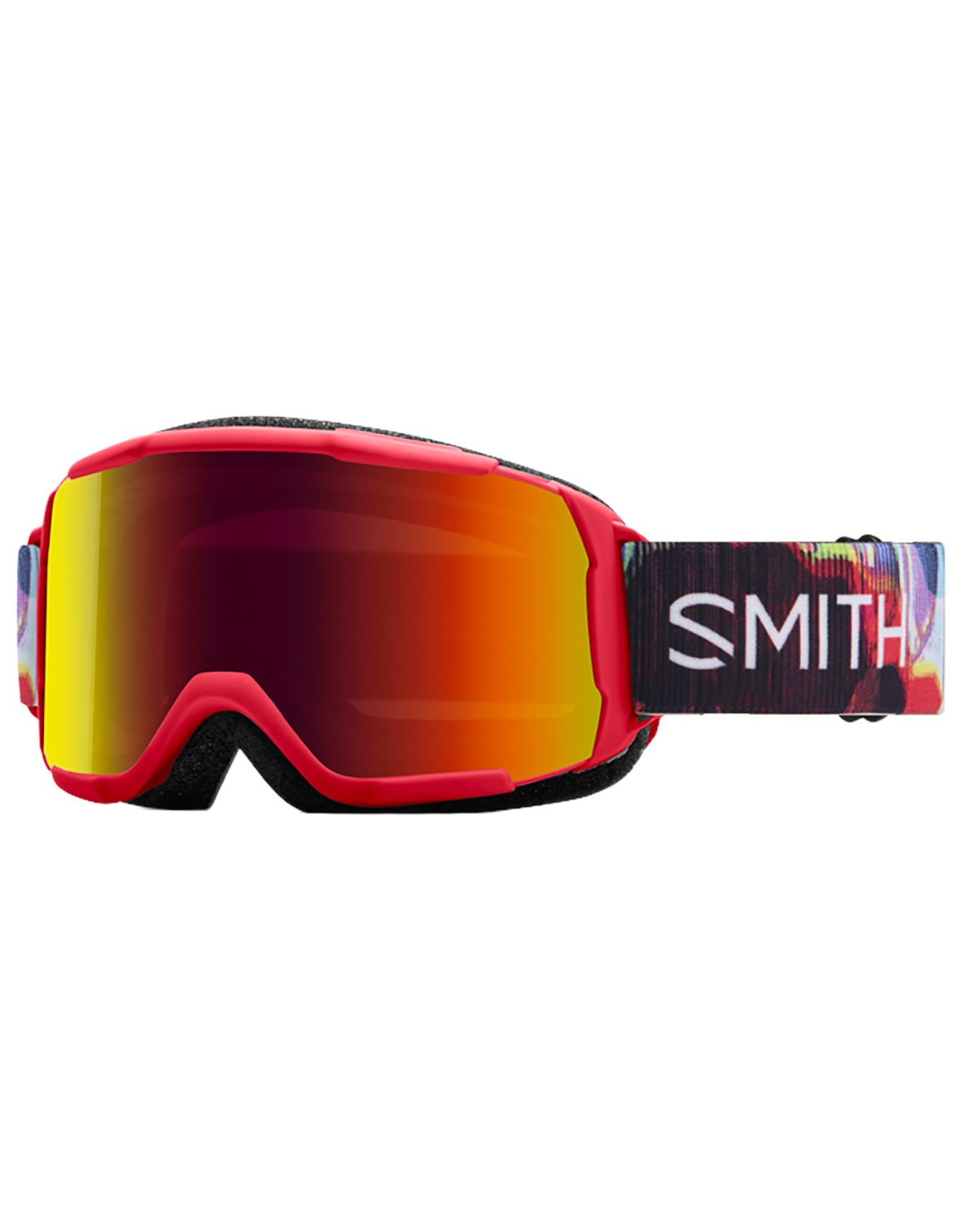 Masque de ski Smith Daredevil Patrol Mixed Signals Red Sol-X Mirror enfant : écran Carbonic-X anti-buée Fog-X, protection UV 100 %, sangle silicone et mousse DriWix pour un ajustement stable et un confort longue durée, compatible lunettes de vue.