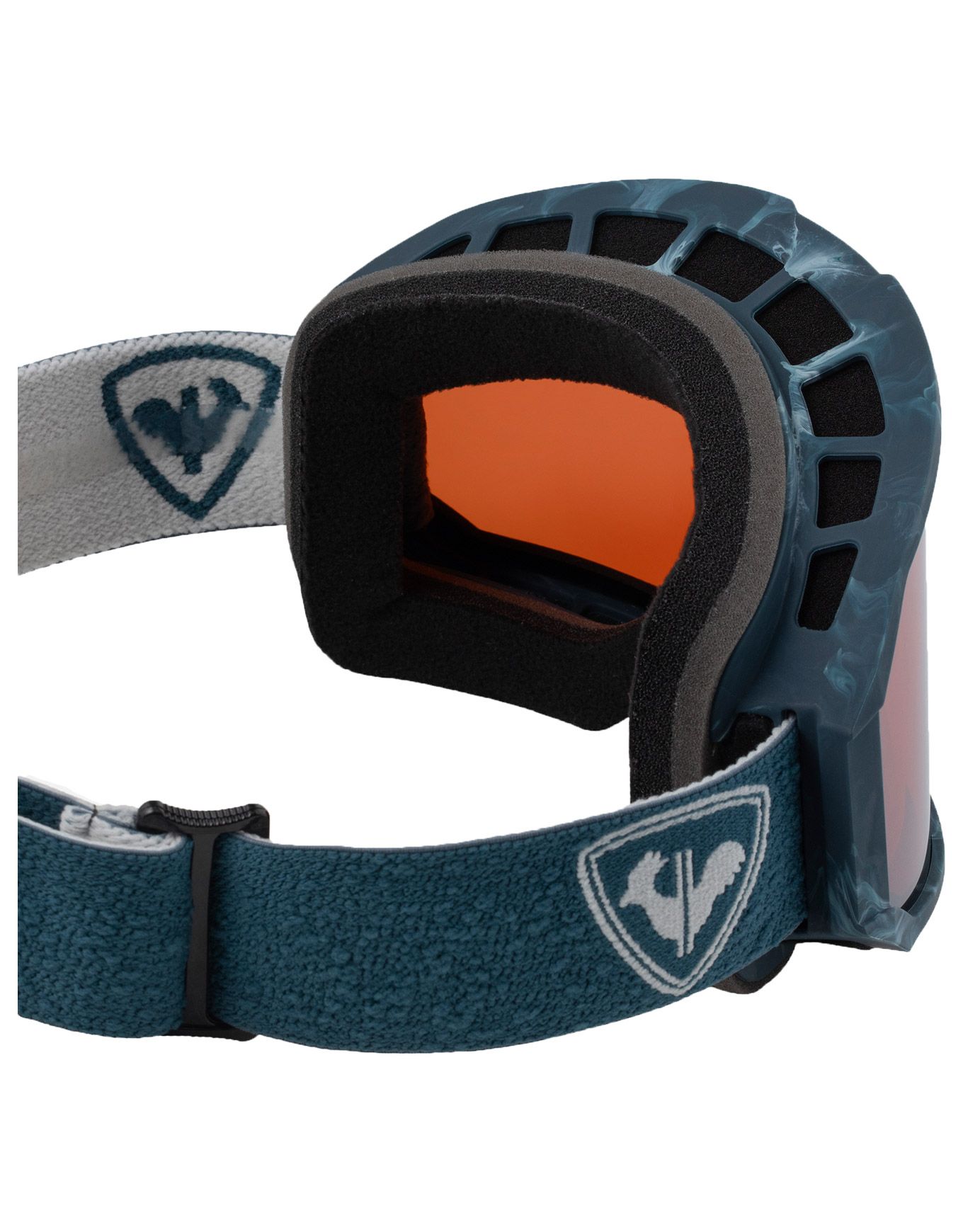 Tout le confort et la protection indispensables pour une belle journée sur les pistes sont assurés par le masque de ski Essential Blue Lagoon de Rossignol.