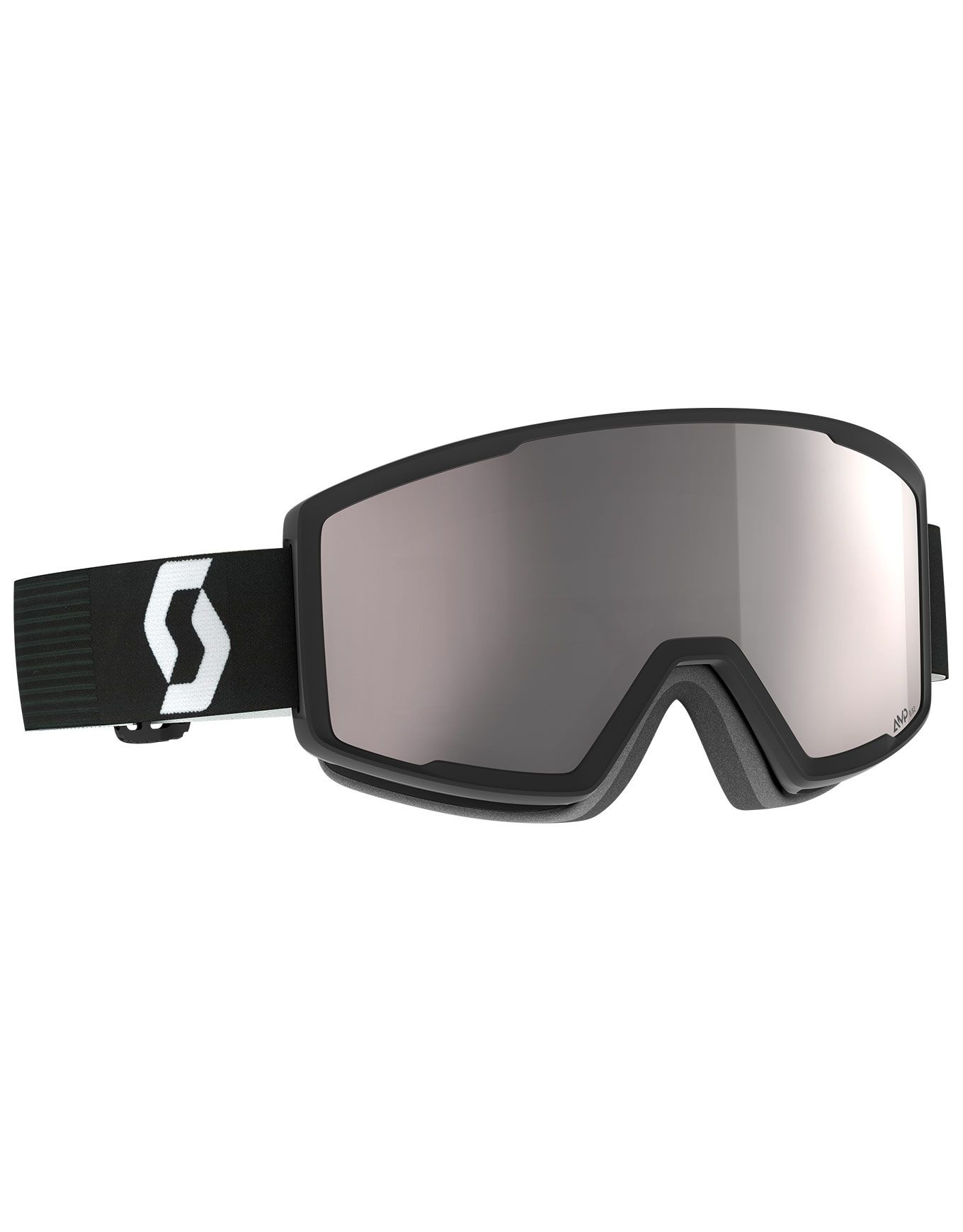Masque de ski Scott Factor Pro Mineral Black/White AMP Silver Chrome S2, cylindrique catégorie 2, technologie Amplifier et traitement NoFog™ pour visages fins à moyens.
