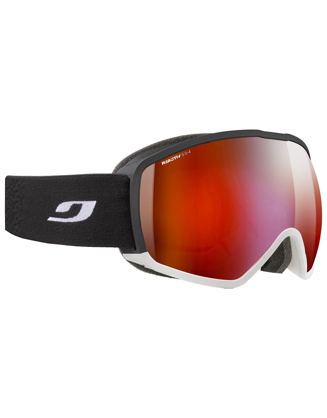 Masque de ski Julbo Hit Reactiv 0-4 HC Black/White : écran sphérique photochromique cat. 4-0, ventilation Air Flow, mousse double densité et bandeau silicone pour un confort total sur les pistes.