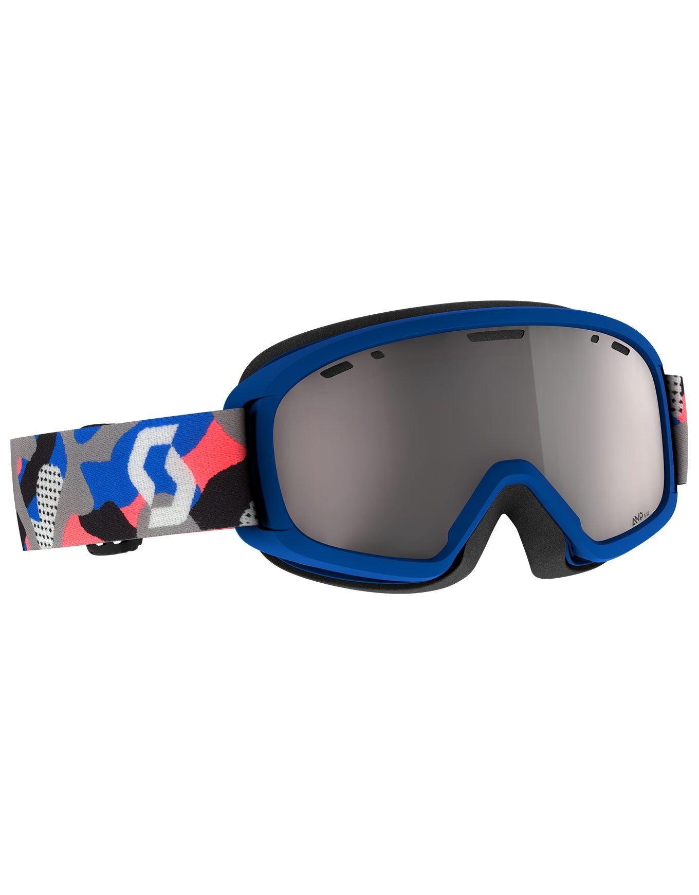Masque de ski Scott Jr Witty Chrome Blue/Grey AMP Silver Chrome S2 enfant : lentille cat. 2, traitement antibuée NoFog™, mousse faciale douce et sangle antidérapante pour un confort et une vision claire sur les pistes.