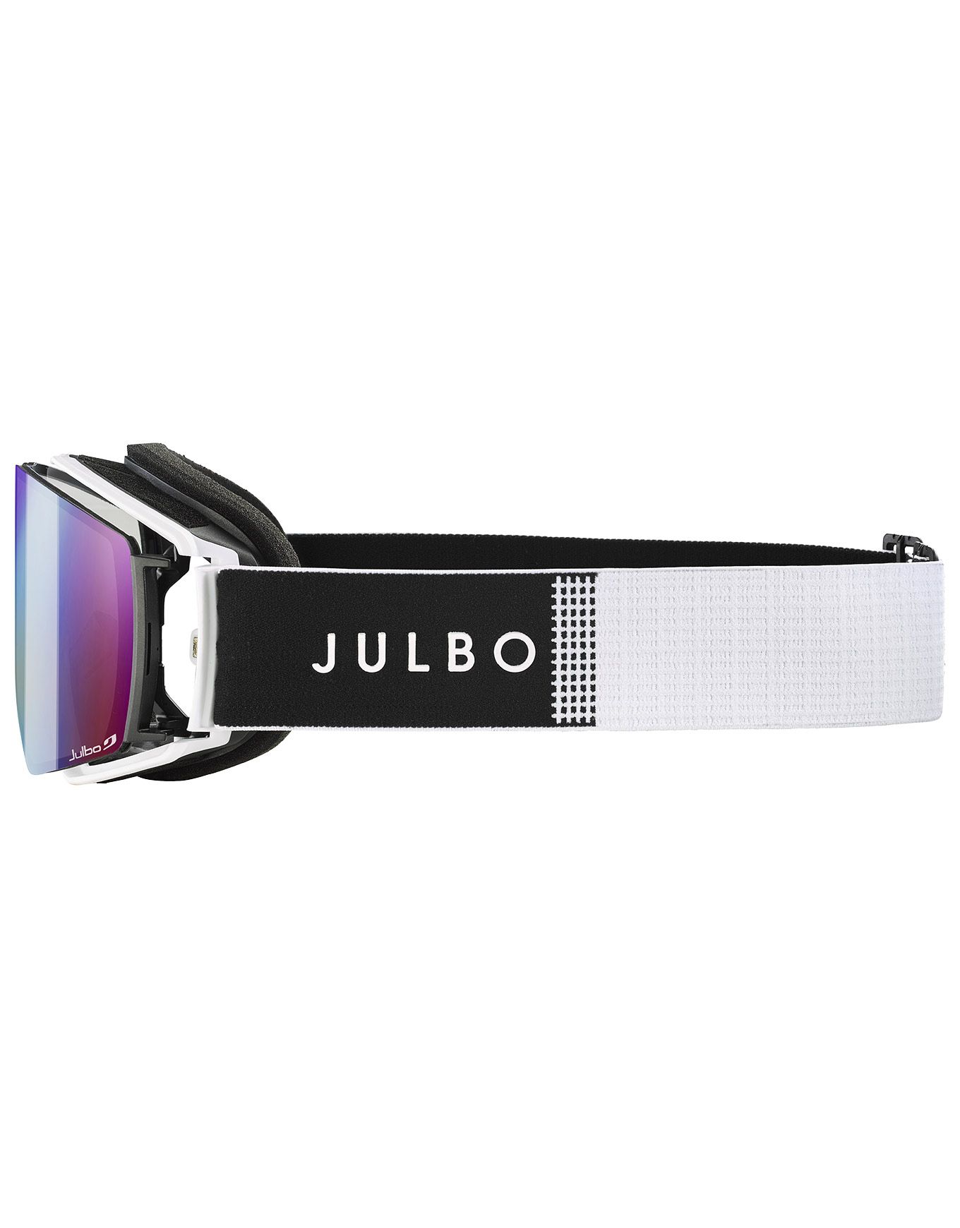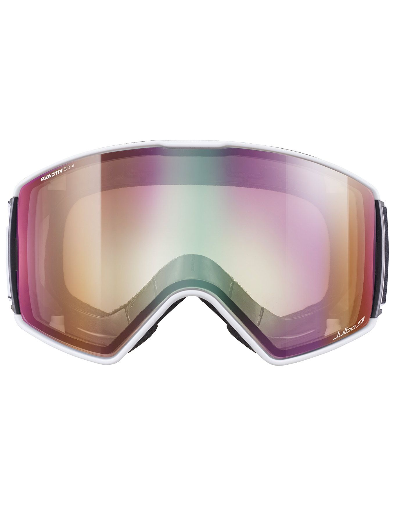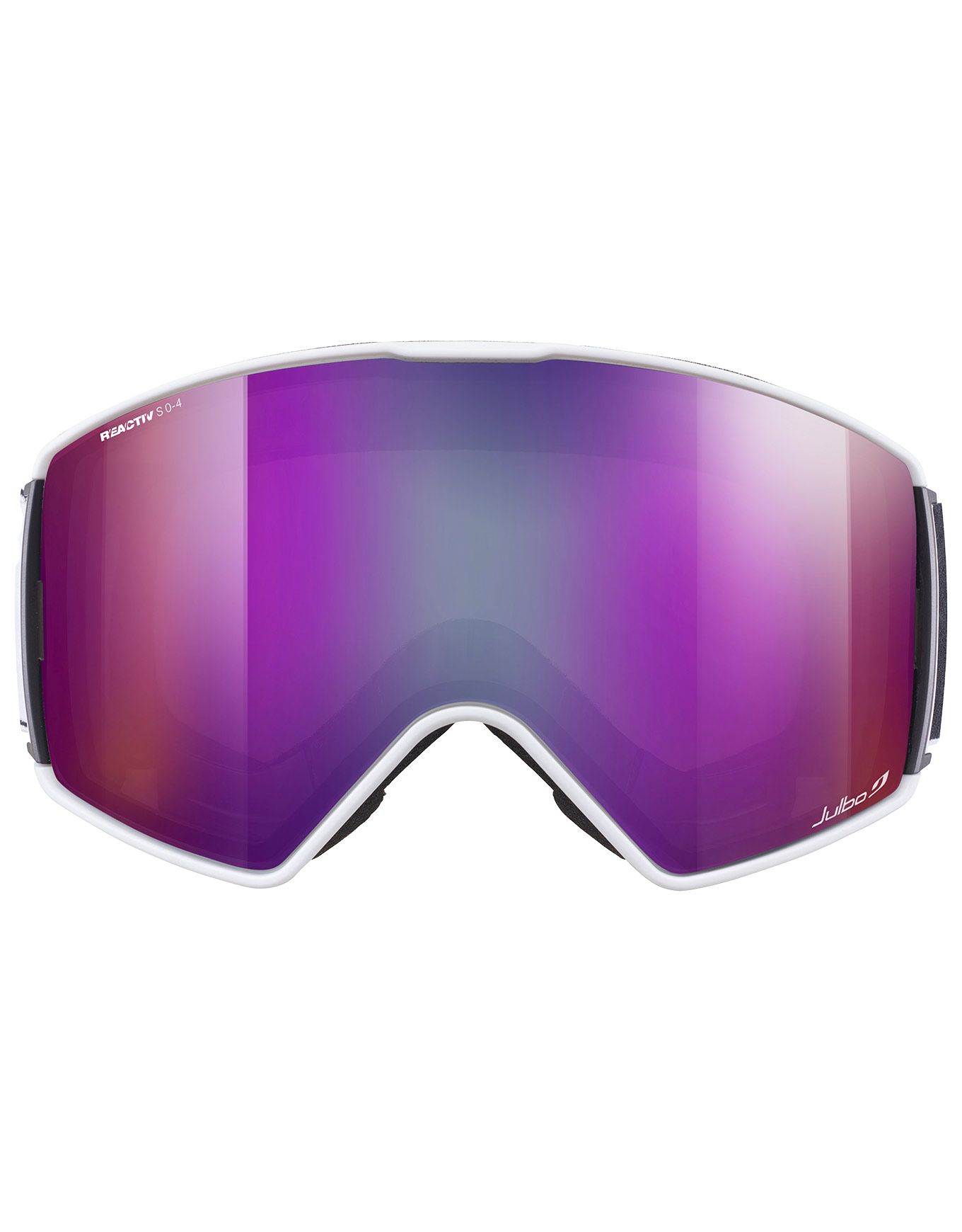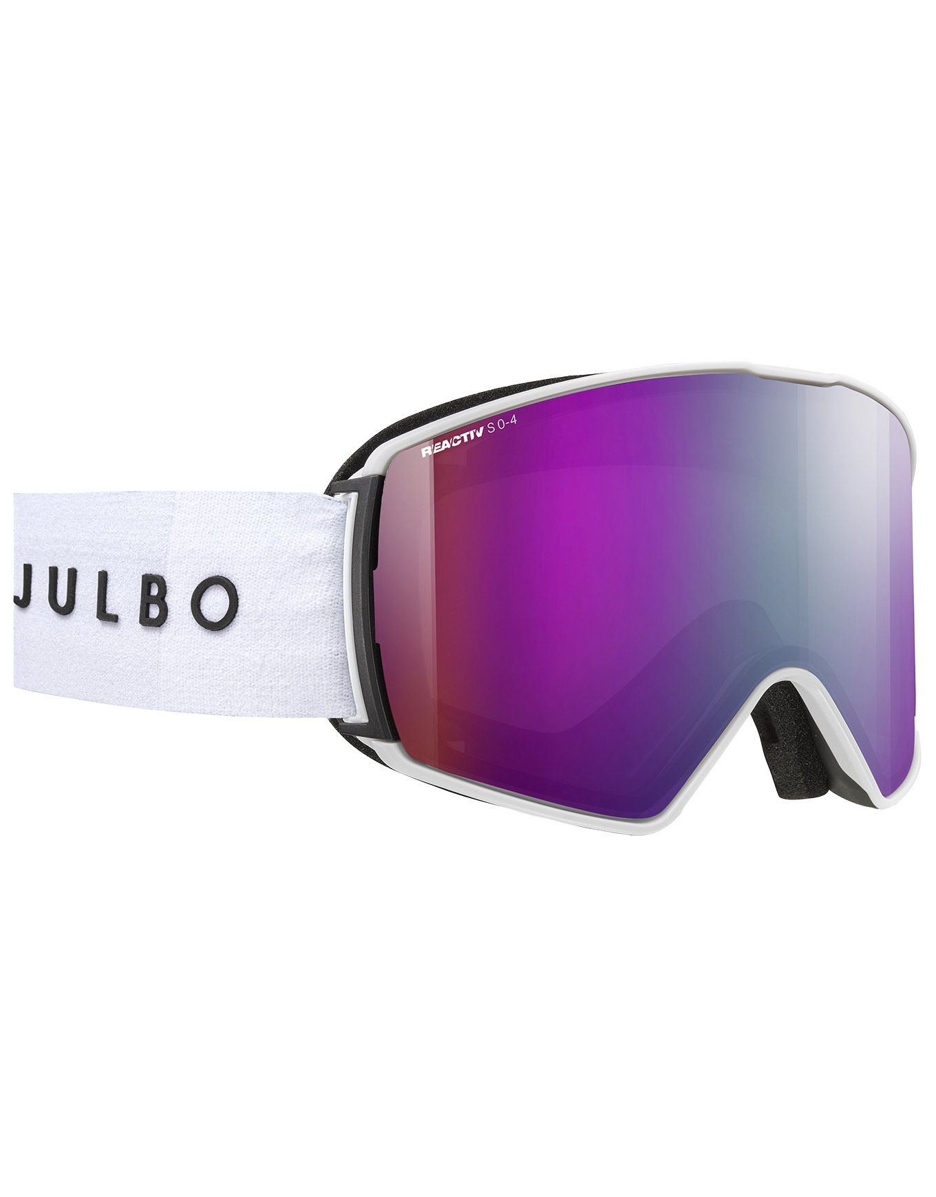 Masque de ski Julbo Launcher Reactiv 0-4 HC White/Black au bandeau silicone Overstrap, monture Frameless, mousse double densité, ventilation Air Flow et SuperFlow Pro anti-buée, écran photochromique 0-4 pour vision claire en toutes conditions.
