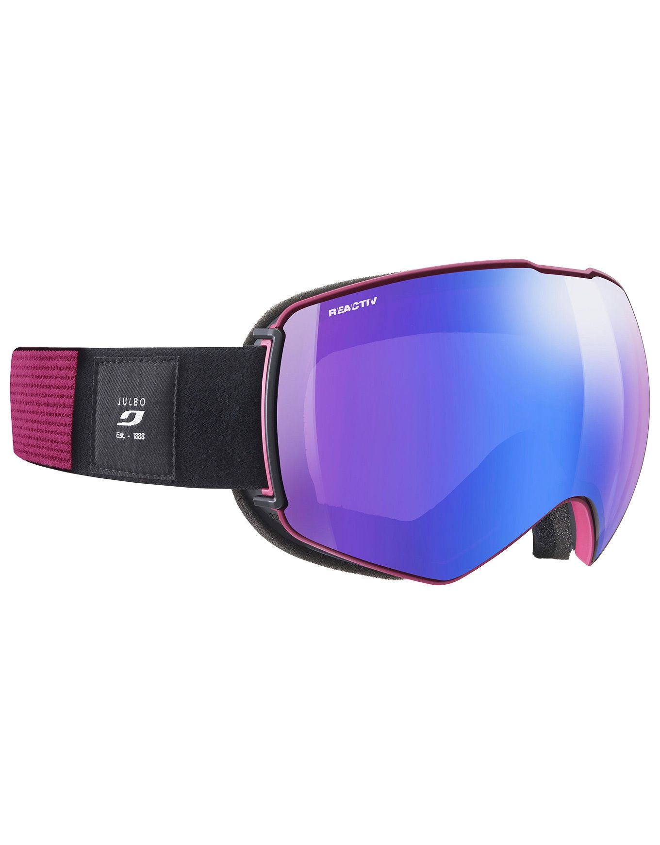 Masque de ski Julbo Lightyear Reactiv 1-3 HC Black/Purple, écran photochromique sphérique, ventilation Air Flow et SuperFlow Pro, monture frameless, compatibilité casque Overstrap.