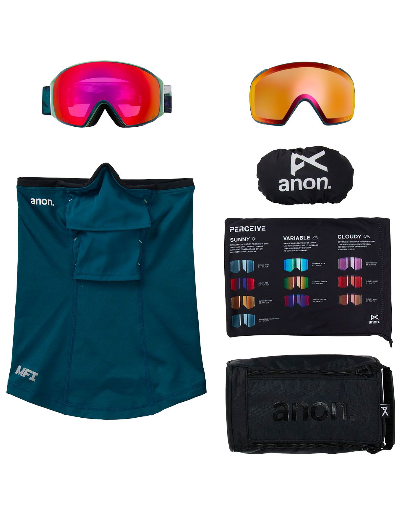 Masque de ski Anon M4S Toric Family Tree Perceive Sun Red, format compact, écran Perceive contrastant, mousse fine à polaire, changement d’écran MAGNA-TECH® et liaison MFI® cagoule incluses.