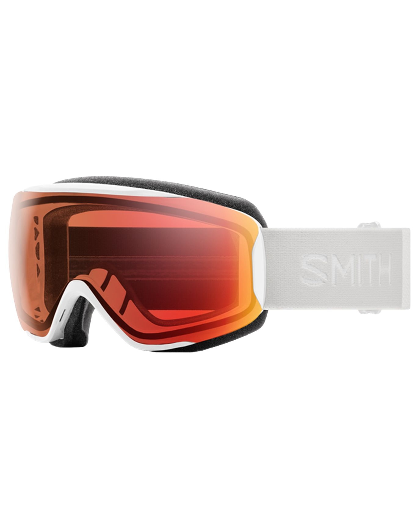 Masque de ski Smith Moment White Vapor Chromapop Pro Photochromic Red Mirror pour femme, écran sphérique 1-3 sans changement, vision sans buée Fog-X, monture Responsive Fit et mousse DriWix pour visage fin.