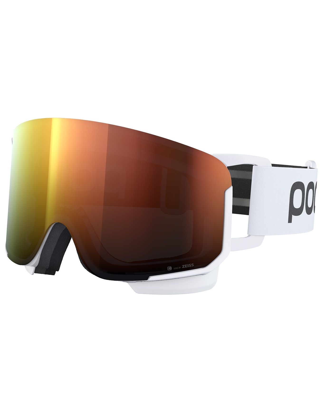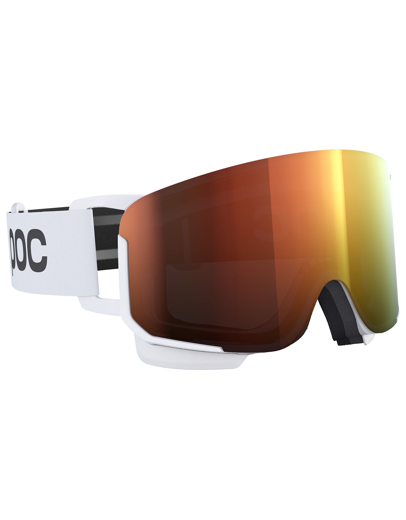 Masque de ski POC Nexal Hydrogen White/Partly Sunny Orange, monture souple, écran Clarity contrastes renforcés, ventilation réglable, mousse triple couche, champ de vision cylindrique élargi.